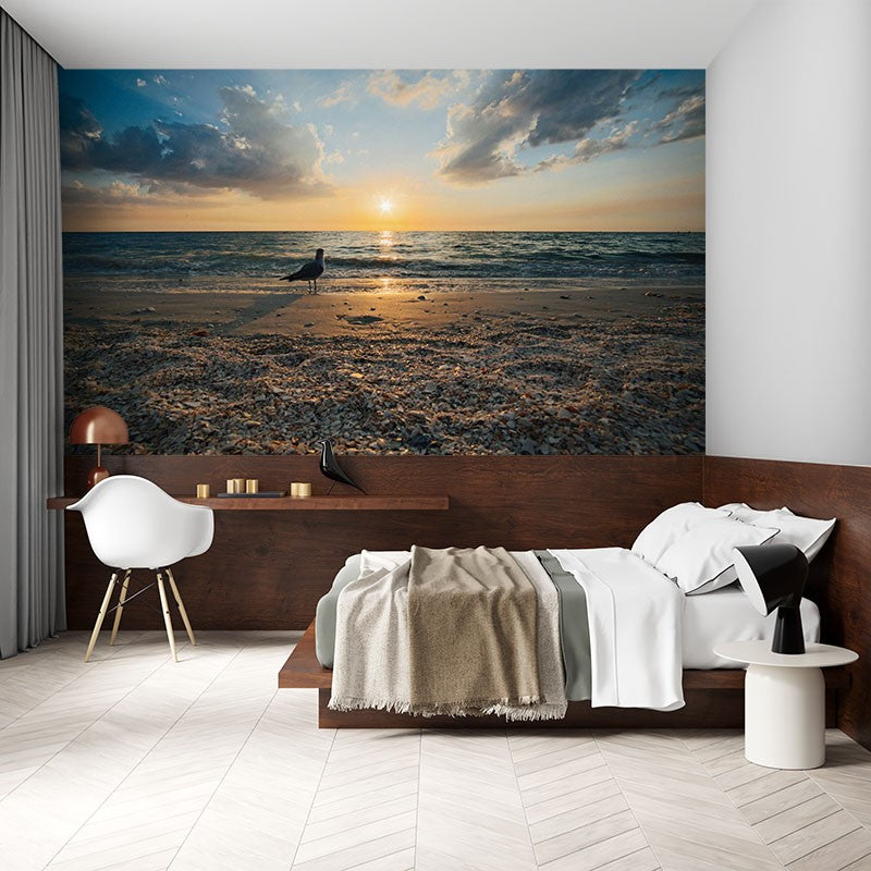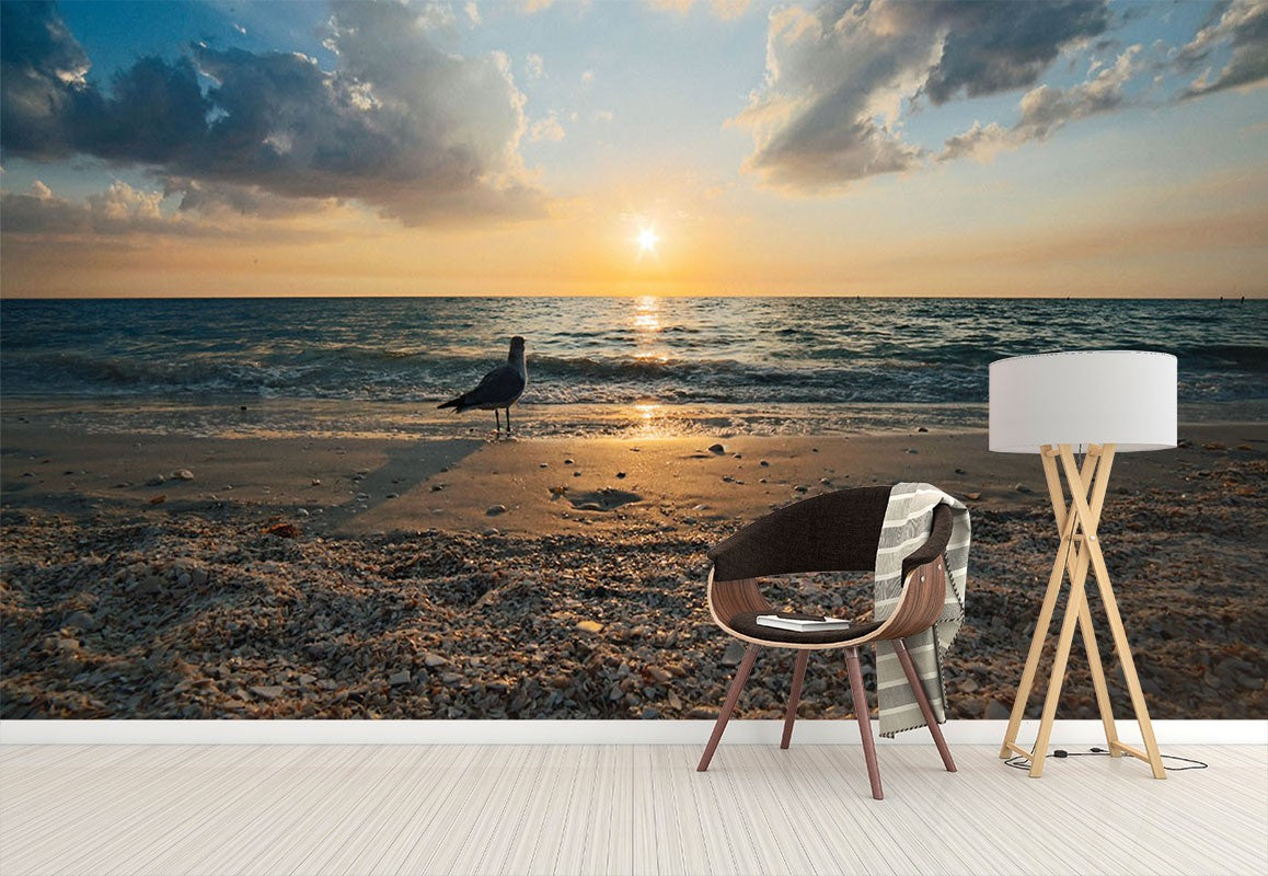 Seagull Sunset Beach Blue Wallpaper Mural,Self-Adhesive Peel And Stick 3D Wall Mural,Bedroom Removable Wall Decor