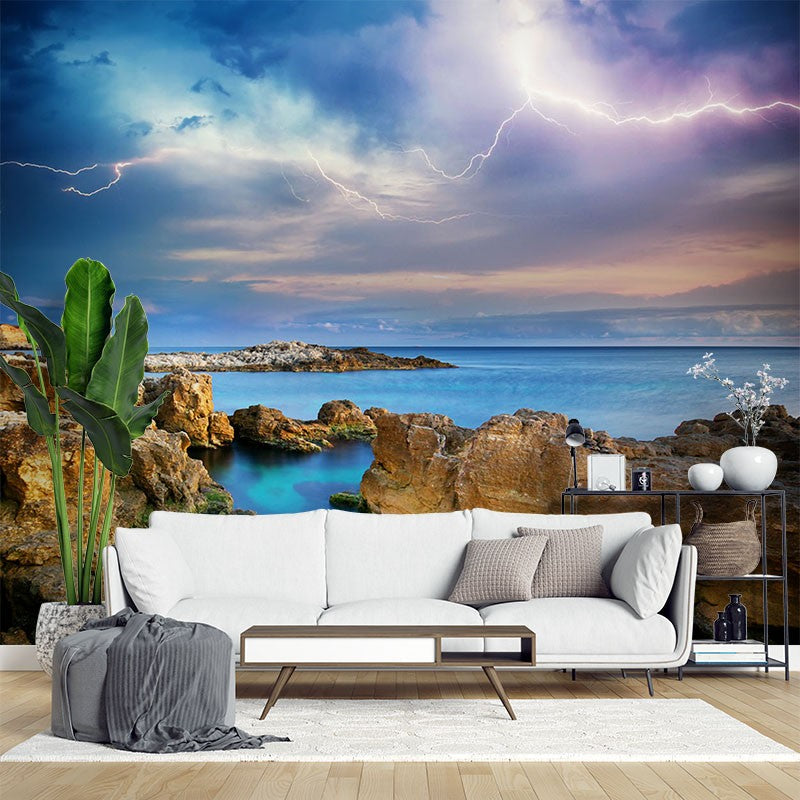 Seaside Rocks Beach Seas Oceans Blue Wallpaper Mural,Self-Adhesive Peel And Stick 3D Wall Paper,Bedroom Designer Wall Decor