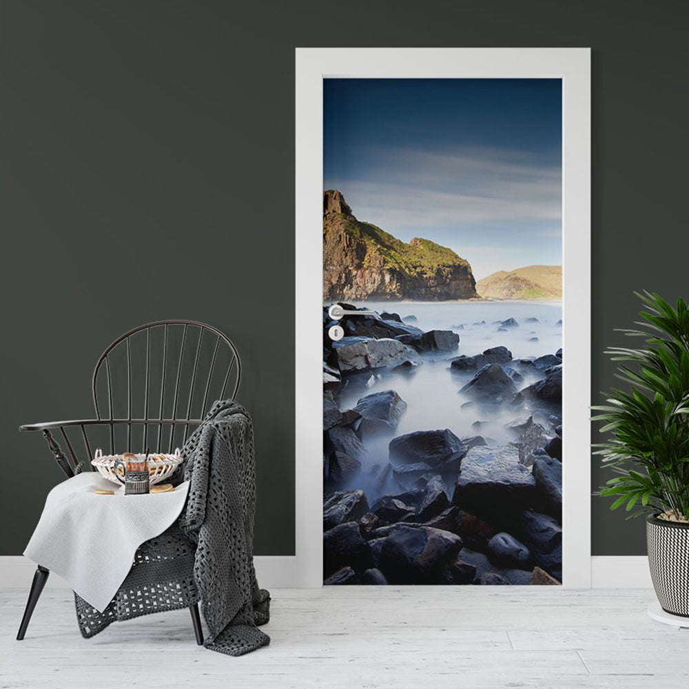 Seaside Rocks Nature Landscape Door Wrap, Customized Mural For Door, Door Mural Sticker, Peel And Stick Door Cover, Removable Door Decal