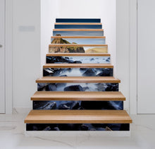 Seaside Rocks Nature Landscape Dark Stair Riser Decals, Waterproof Removable Staircase Decals, Vinyl Peel And Stick Stairs Decal Stickers