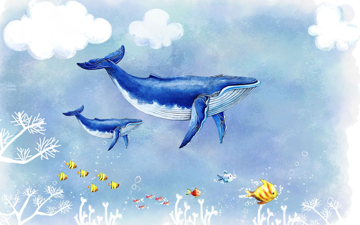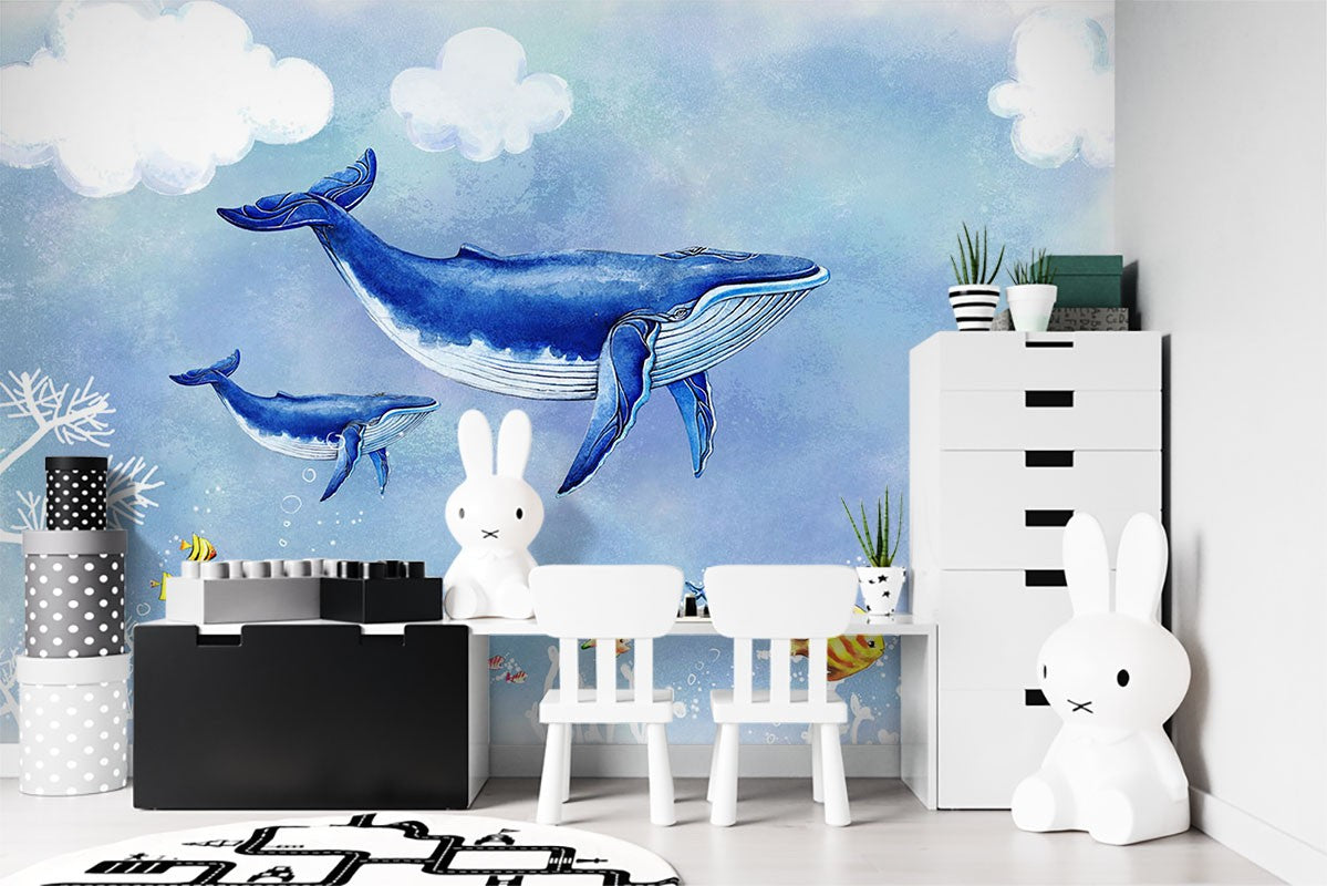 Shark Underwater Kids Animal Blue Wallpaper Mural,Self-Adhesive Peel And Stick 3D Wall Art,Removable Bedroom Wall Decor
