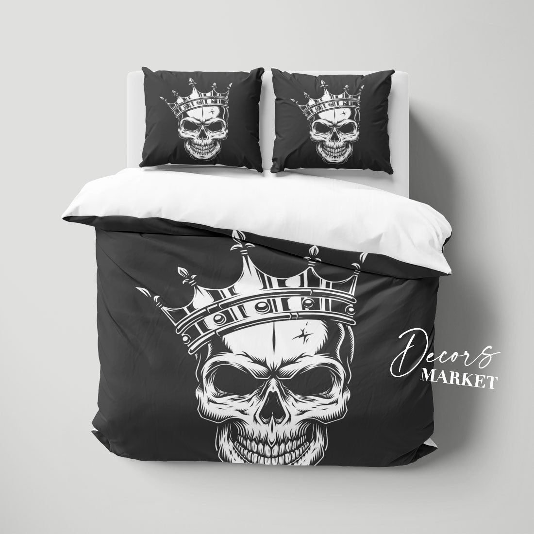 Skeleton Crown Duvet Cover Set w Pillowcases, Black&White Art Fantasy 3D Quilt Cover, 3pc Single Double Queen King Size Doona Cover