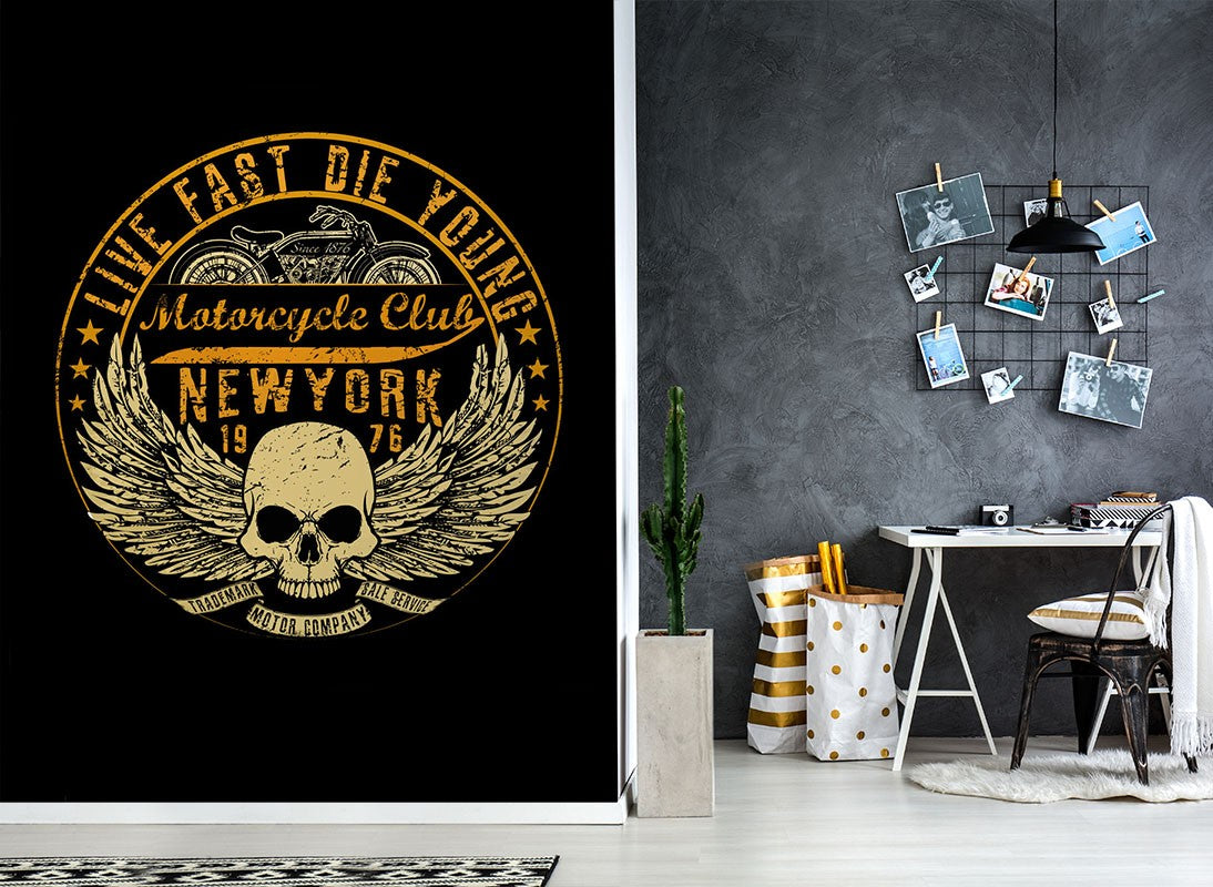 Skull Art Pop Art Black Wallpaper Mural,Self-Adhesive Peel And Stick 3D Wall Paper,Designer Removable Wall Decor