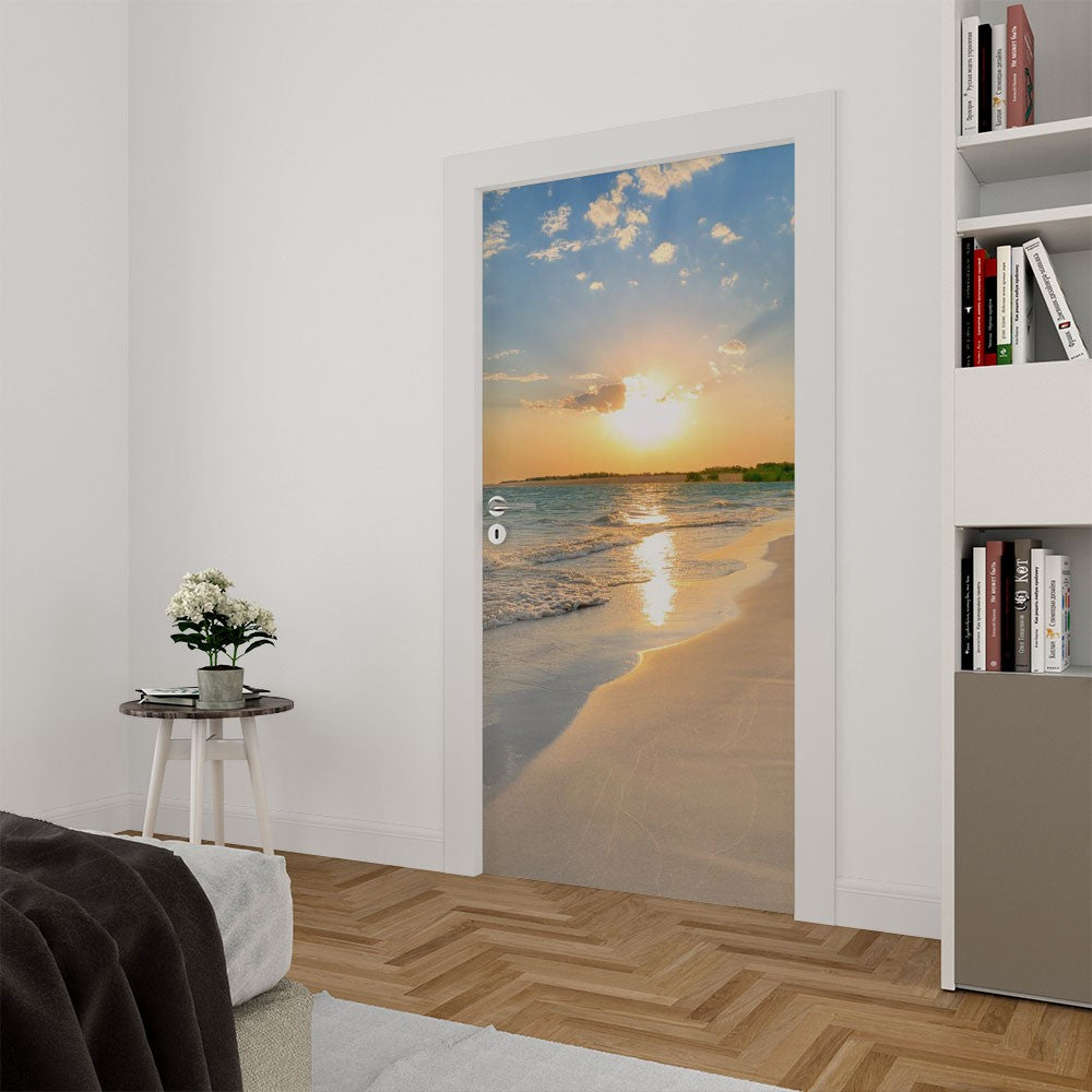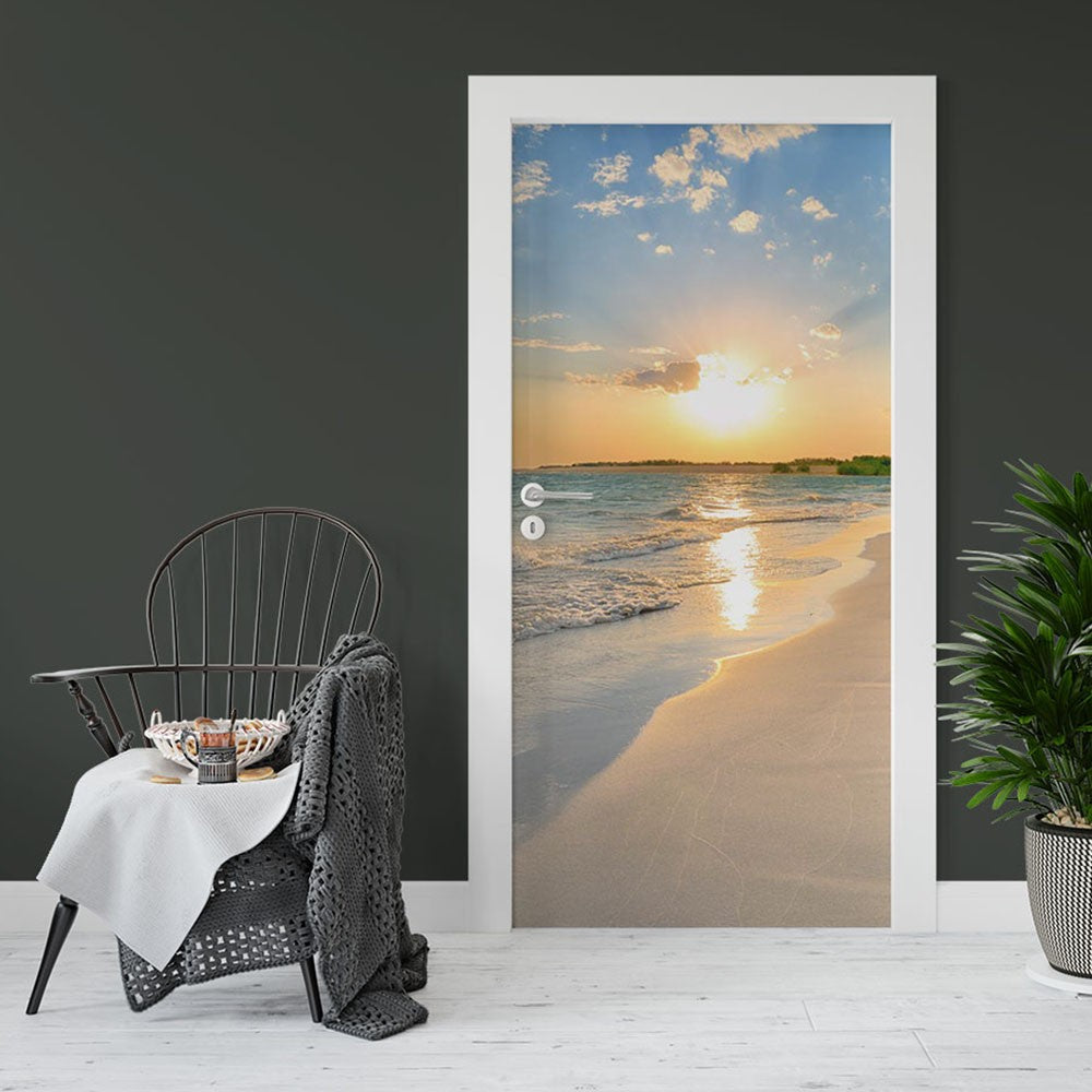 Sky Beach Sandy Beach Waves Door Wrap, Customized Mural For Door, Door Mural Sticker, Peel And Stick Door Cover, Removable Door Decal