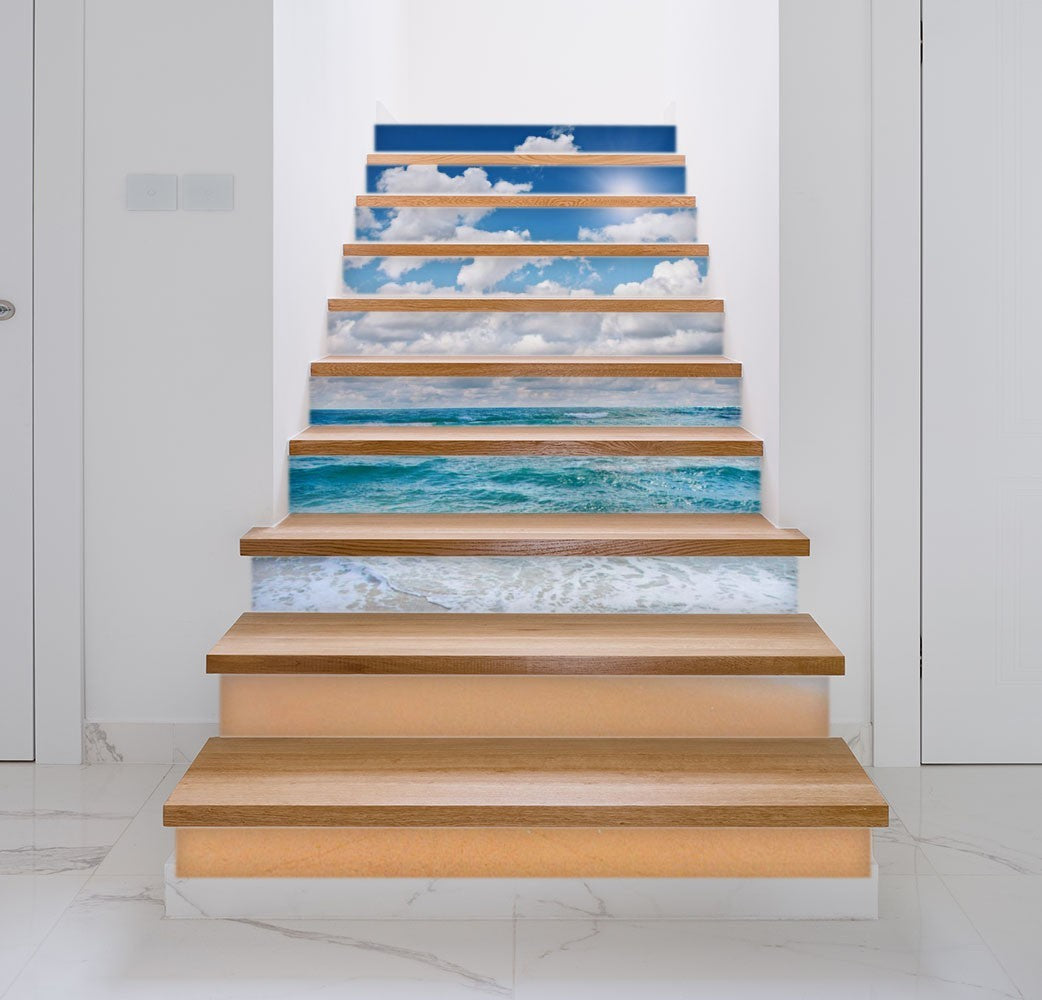 Sky Beach Blue Stair Riser Decals, Waterproof Removable Staircase Decals, Vinyl Peel And Stick Stairs Decal Stickers