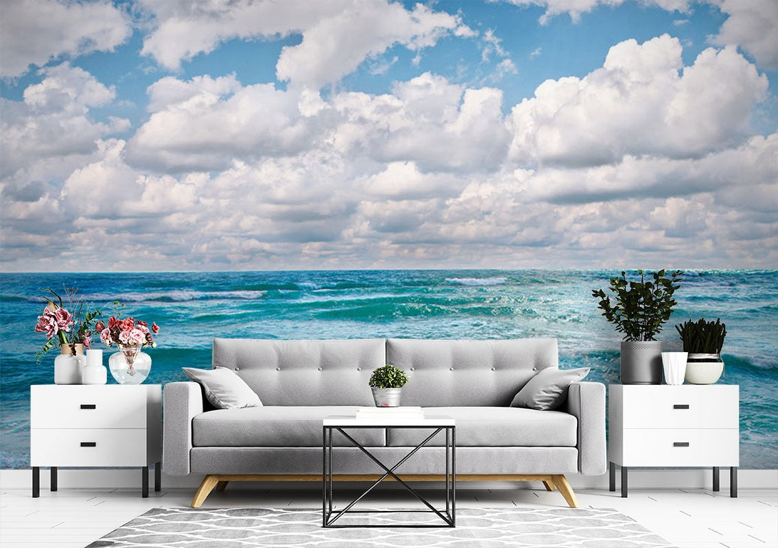 Sky Beach Blue Wallpaper Mural,Self-Adhesive Peel And Stick 3D Wall Paper,Removable Designer Wall Decor