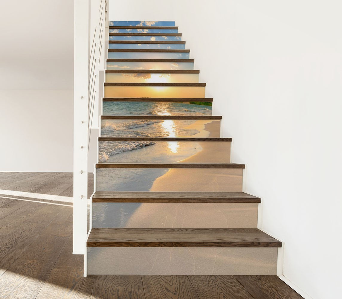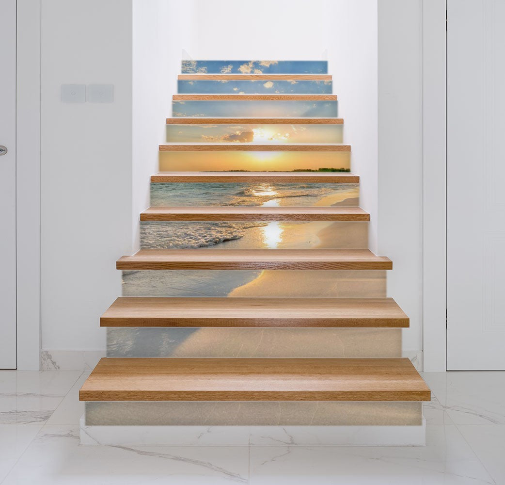 Sky Beach Orange Stair Riser Decals, Waterproof Removable Staircase Decals, Vinyl Peel And Stick Stairs Decal Stickers