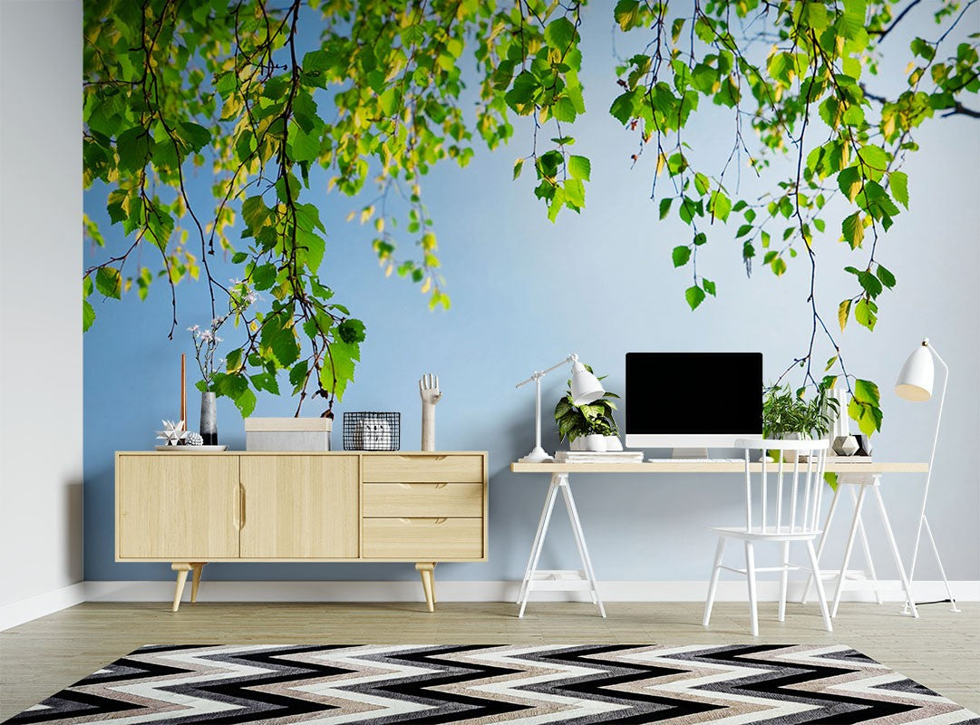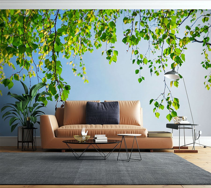 Sky Floral Leaves Green Wallpaper Mural,Self-Adhesive Peel And Stick 3D Wall Decal,Australian Company Designer Wall Decor