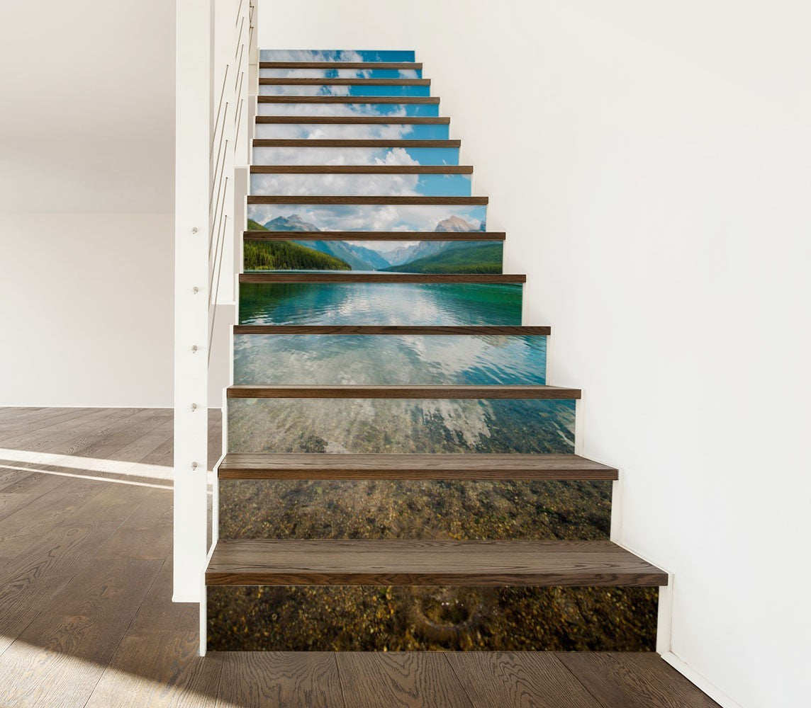 Sky Lake Nature Rivers Lakes Blue Stair Riser Decals, Waterproof Removable Staircase Decals, Vinyl Peel And Stick Stairs Decal Stickers