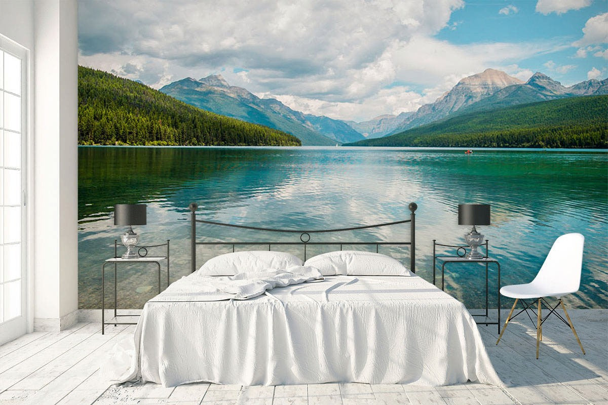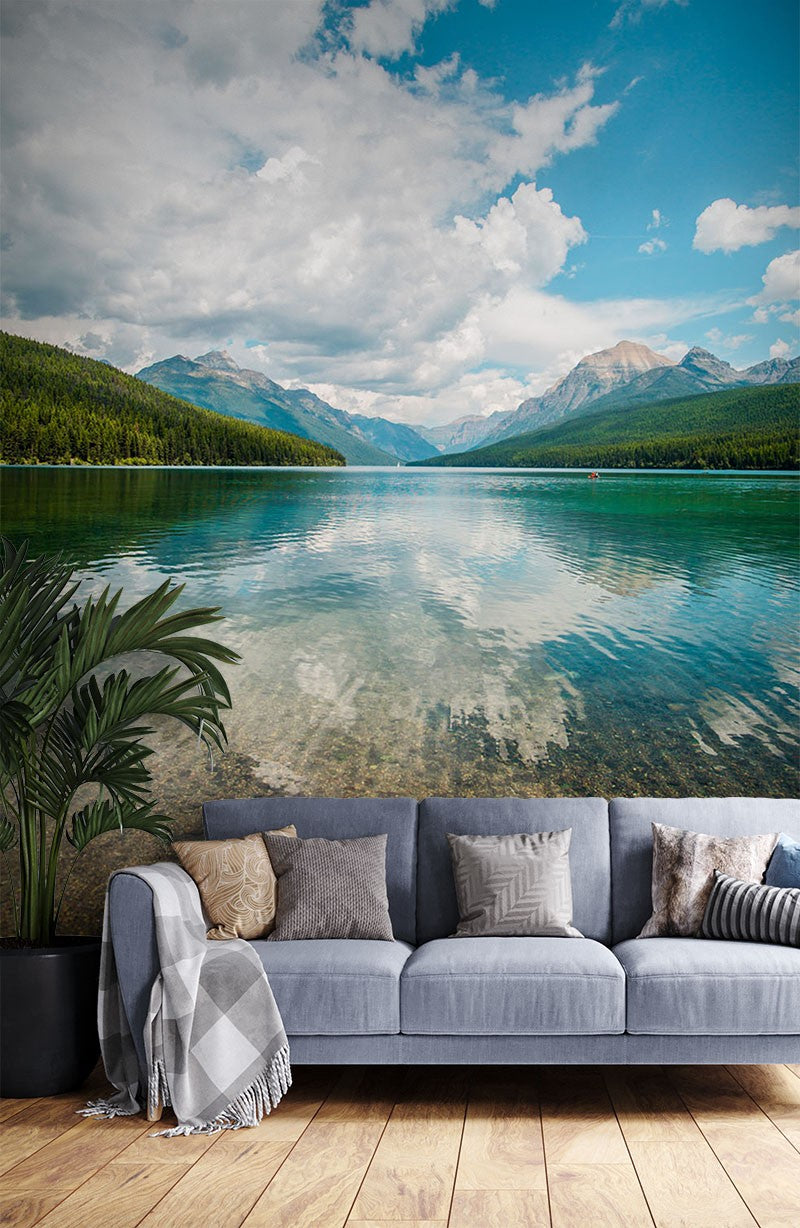 Sky Lake Nature Rivers Lakes Blue Wallpaper Mural,Self-Adhesive Peel And Stick 3D Wall Art,Bedroom Designer Wall Decor