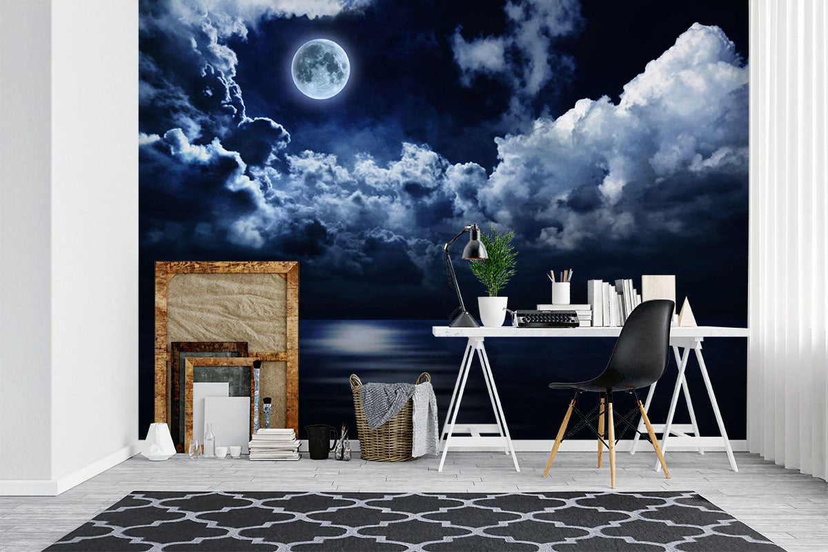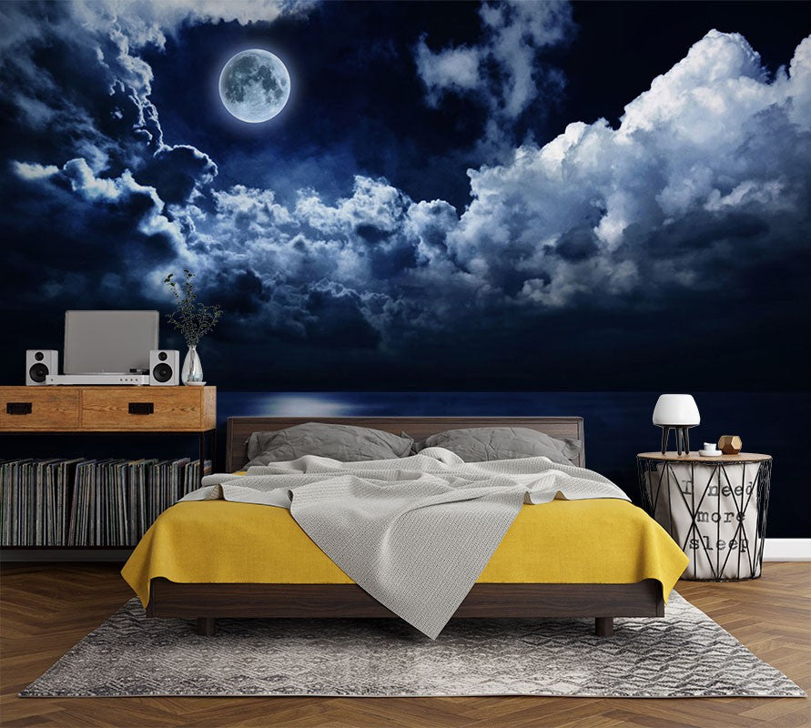 Sky Moon Nature Blue Wallpaper Mural,Self-Adhesive Peel And Stick 3D Wall Decal,Australian Company Wall Decor