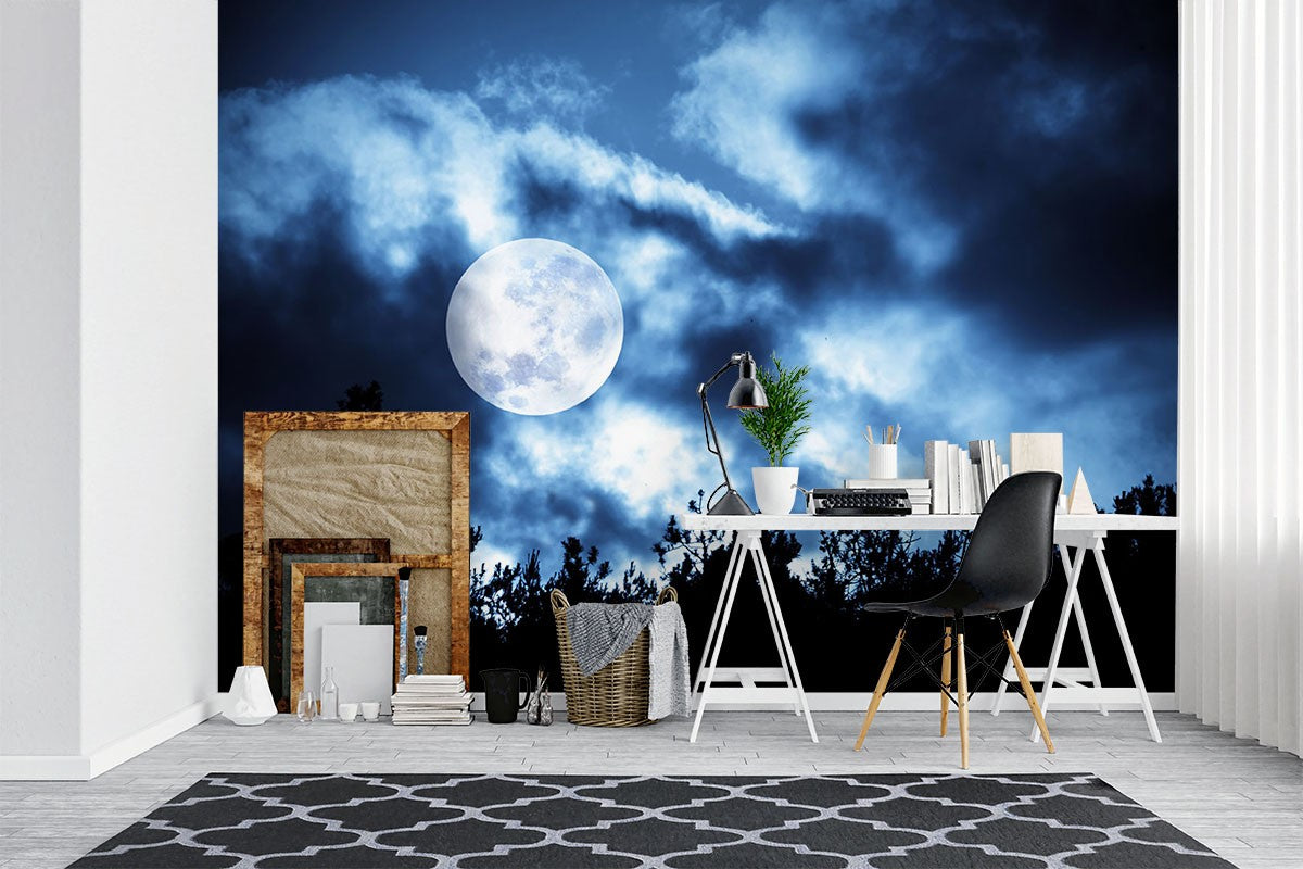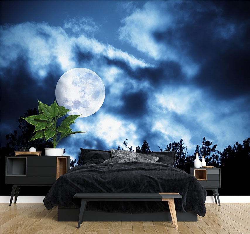 Sky Moon Nature Blue Wallpaper Mural,Self-Adhesive Peel And Stick 3D Wall Decal,Bedroom Australian Company Wall Decor