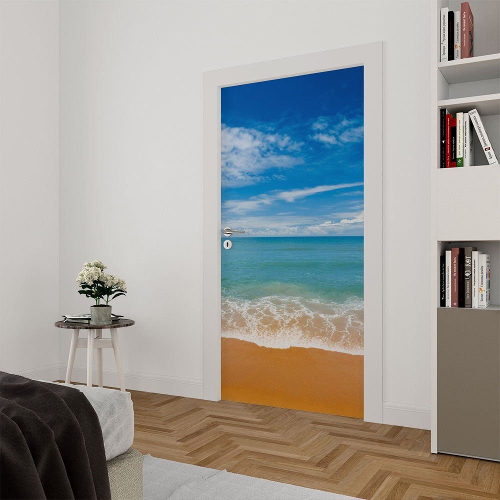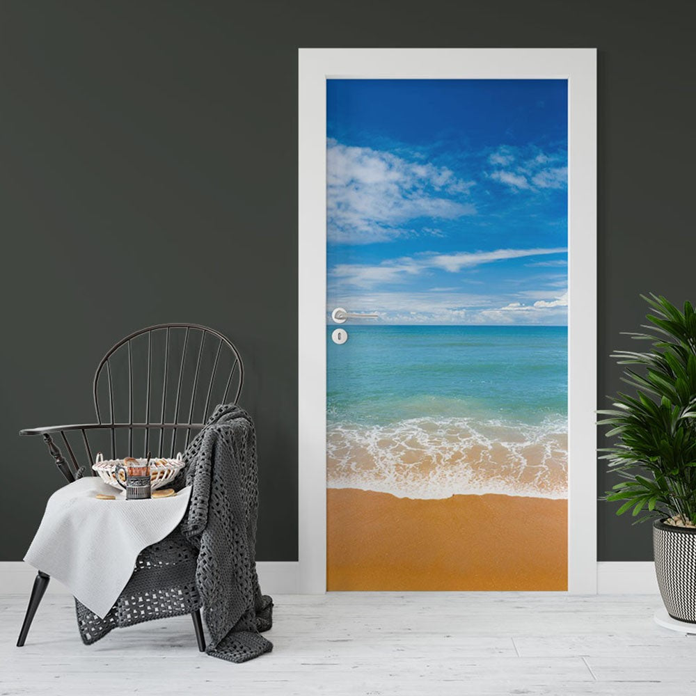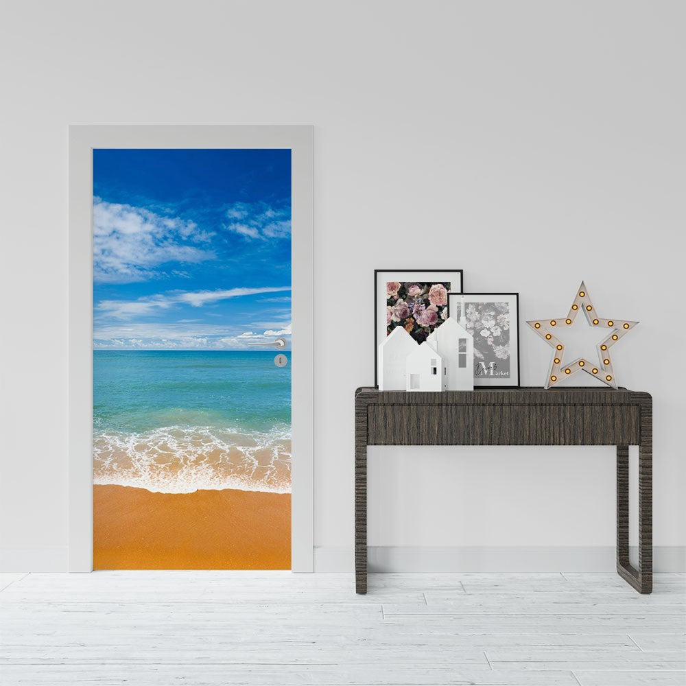 Sky Sandy Beach Wavy Seas & Oceans Door Wrap, Customized Mural For Door, Door Mural Sticker, Peel And Stick Door Cover, Removable Door Decal