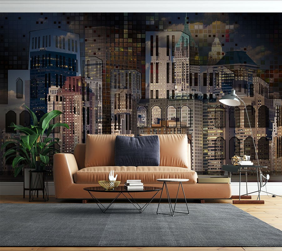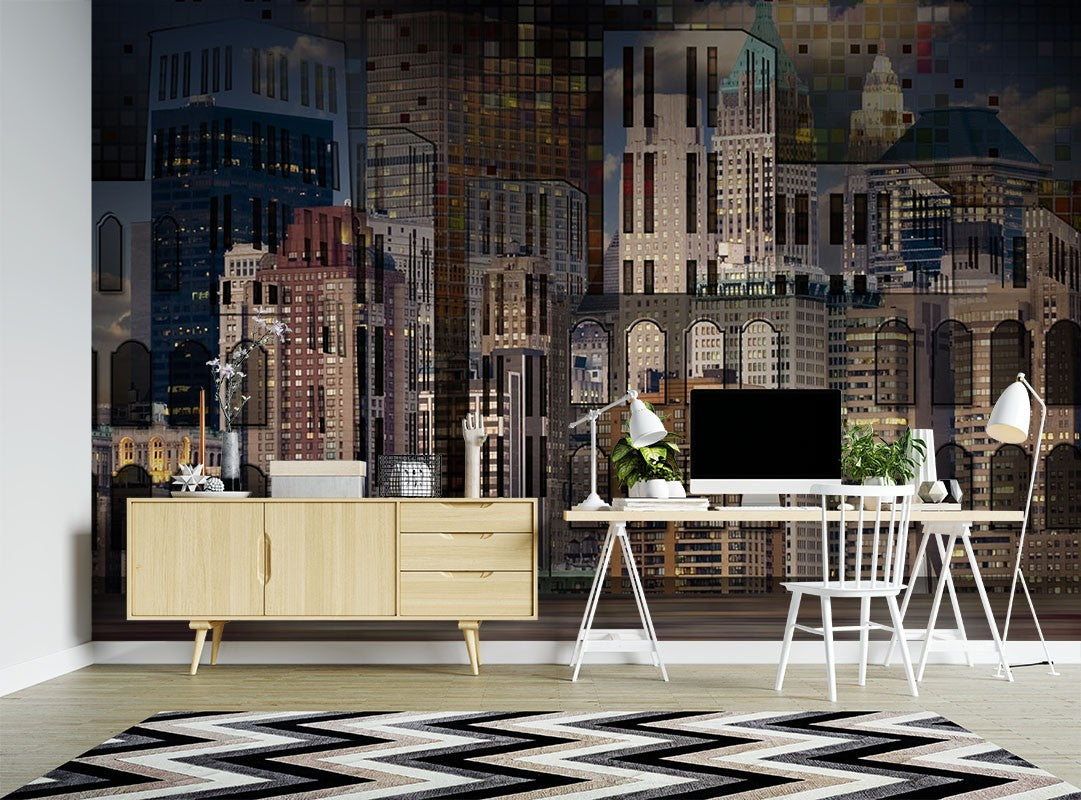 Skyscrapers At Night City Brown Wallpaper Mural,Self-Adhesive Peel And Stick 3D Wall Paper,Designer Australian Company Wall Decor