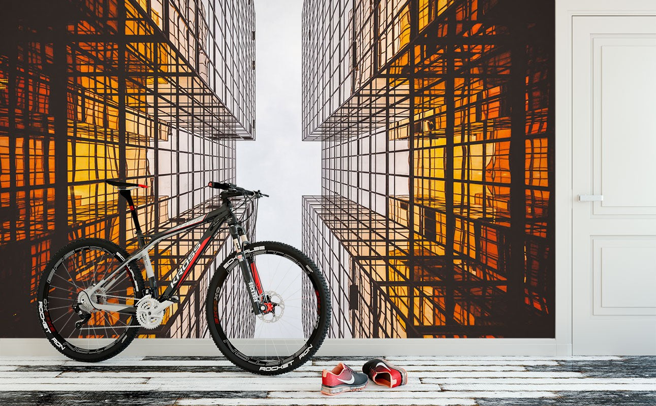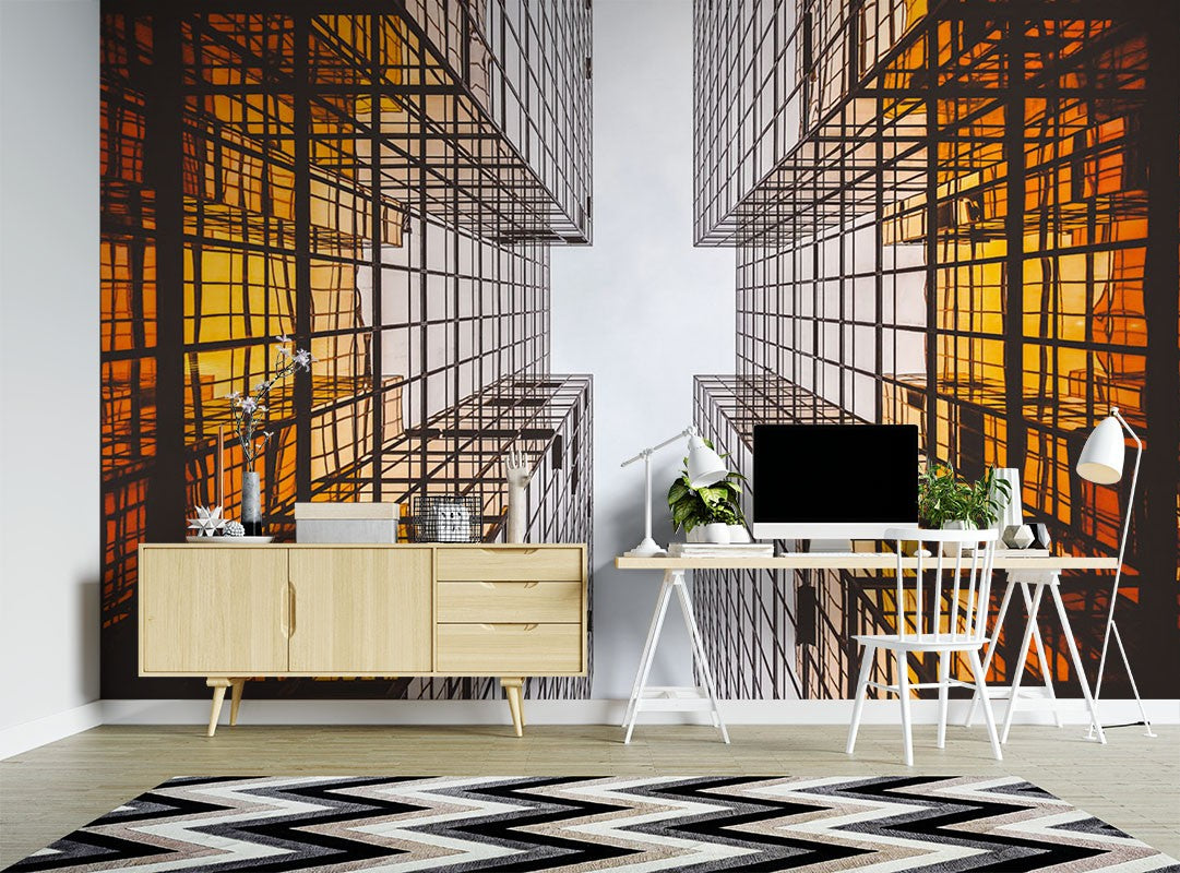 Skyscrapers City Architecture Yellow Wallpaper Mural,Self-Adhesive Peel And Stick 3D Wall Mural,Australian Company Designer Wall Decor