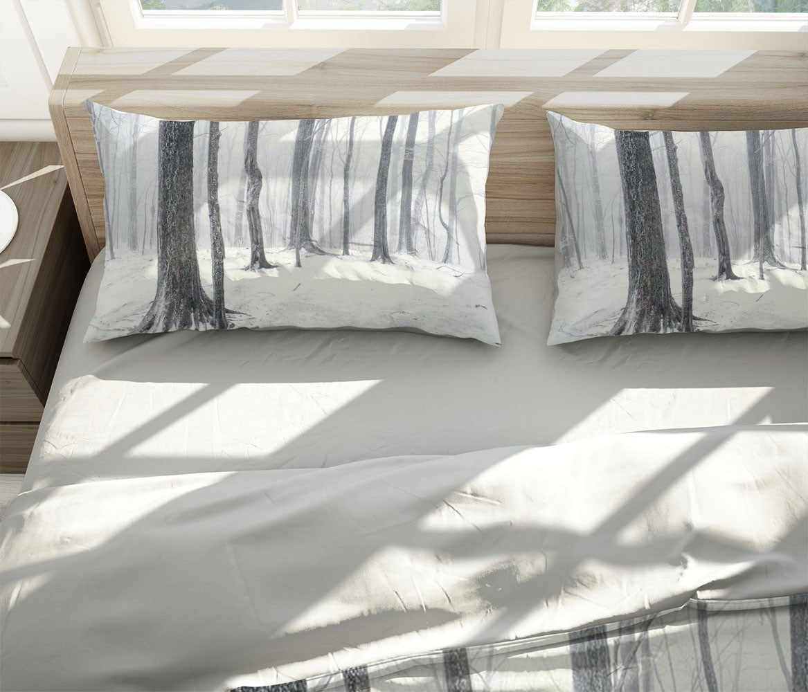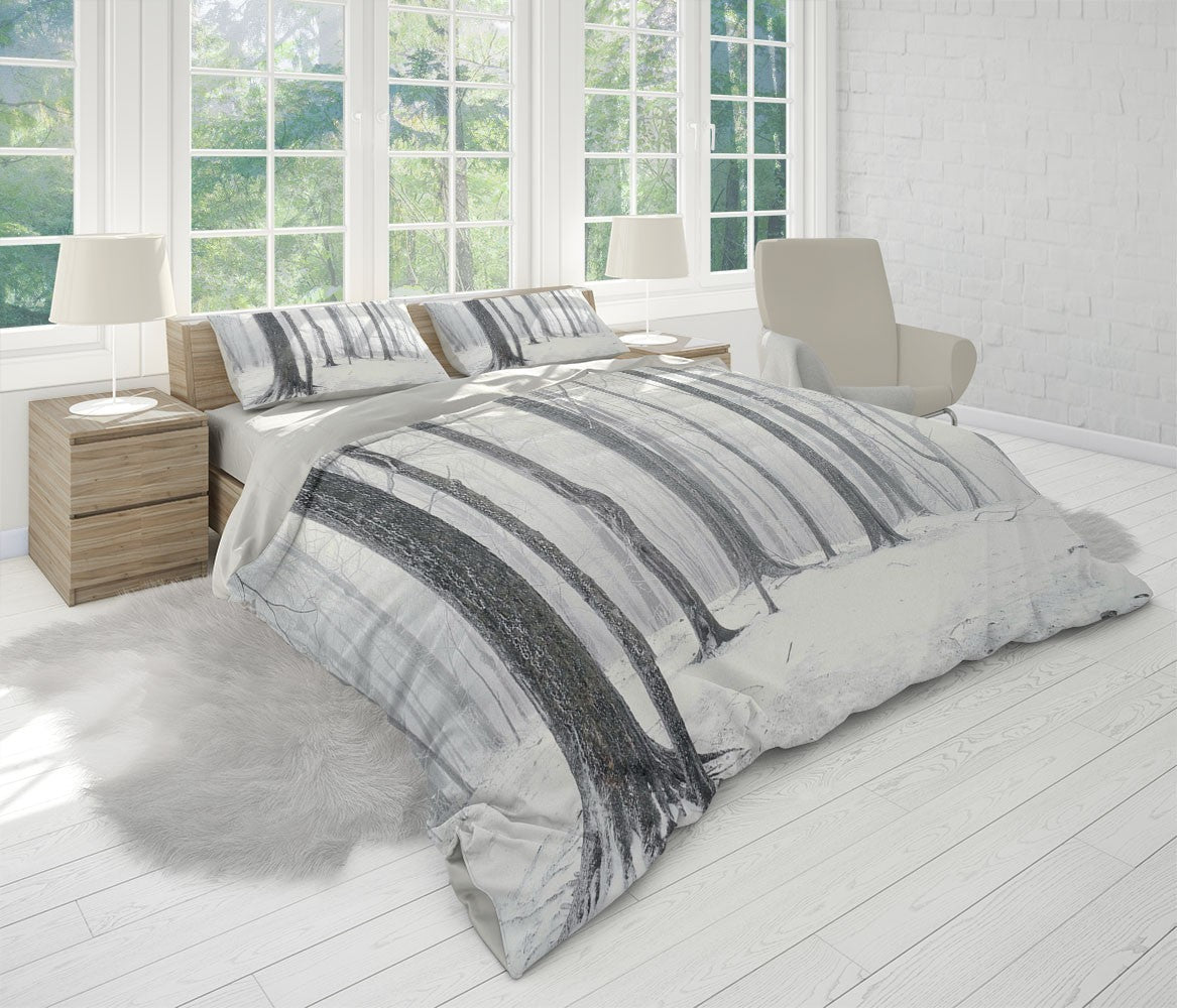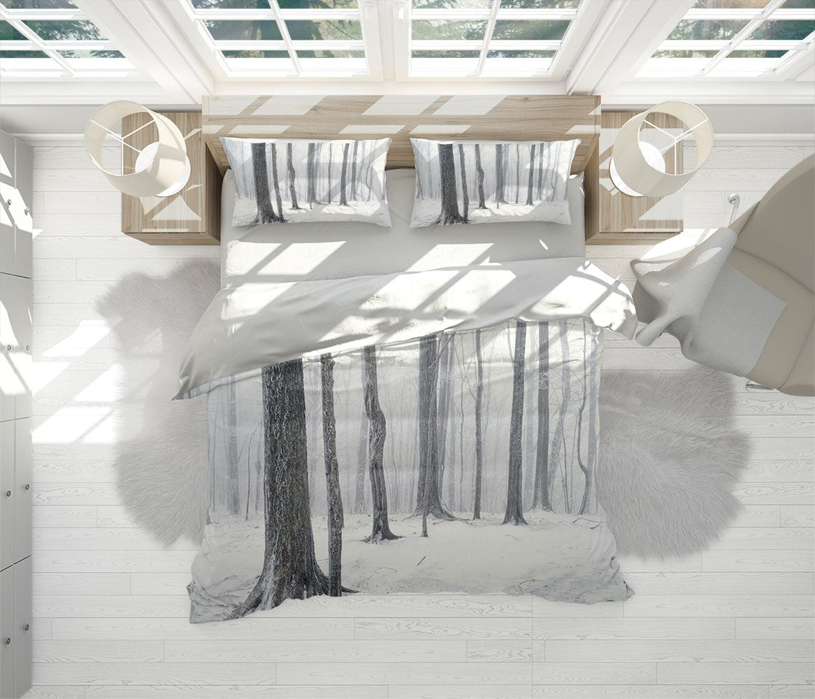 Snow Branches Duvet Cover Set W Pillow Cover, Black And White Forest Forest 3D Quilt Cover, Single Double Queen King Size Doona Cover