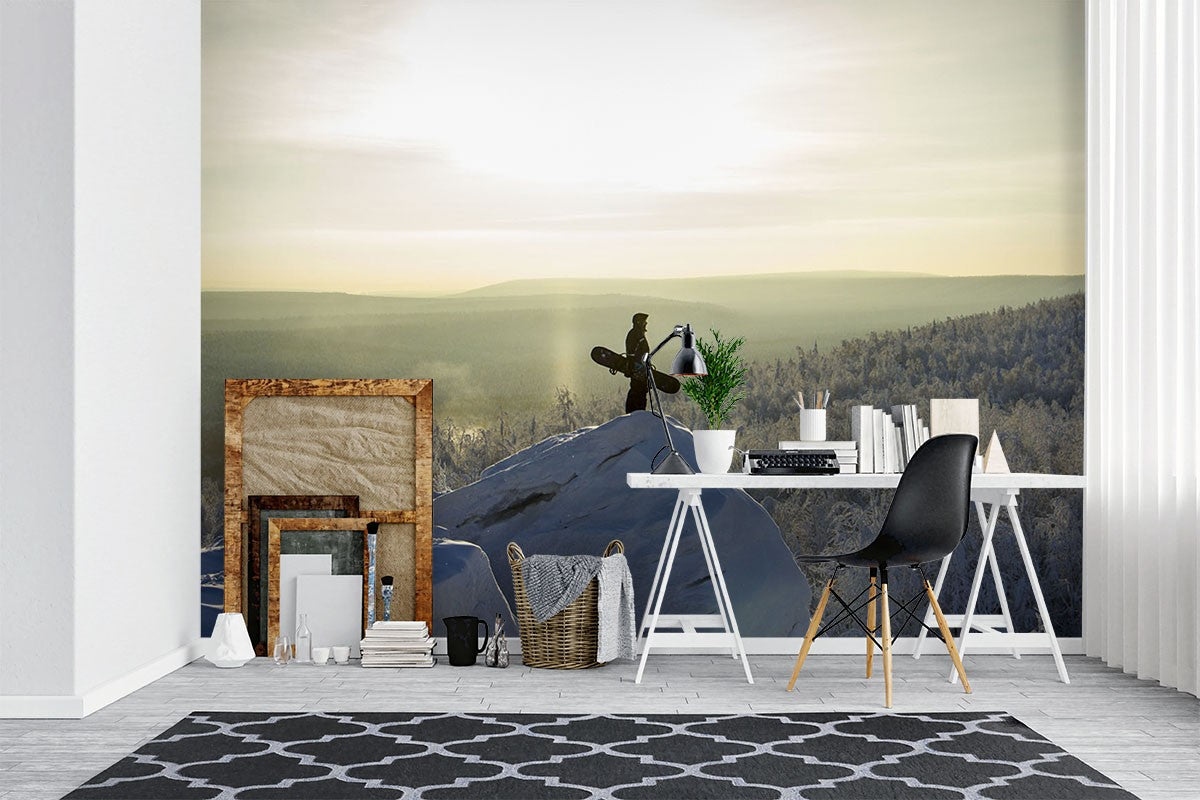 Snow Mountain Nature Gold Wallpaper Mural,Self-Adhesive Peel And Stick 3D Wall Paper,Australian Company Designer Wall Decor