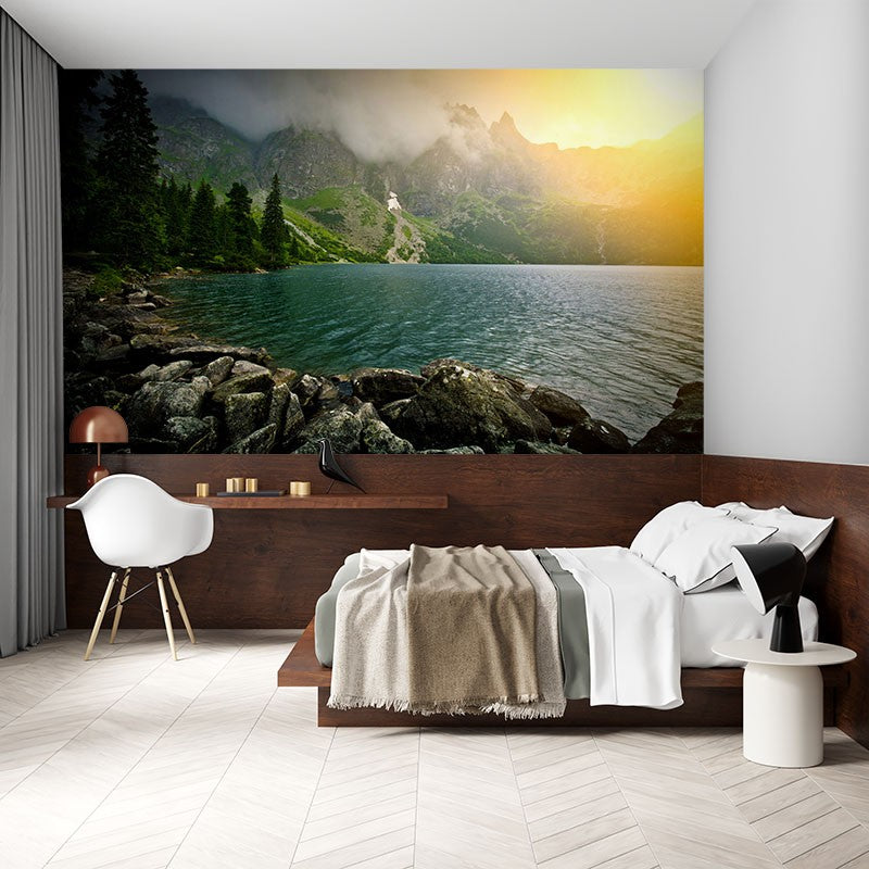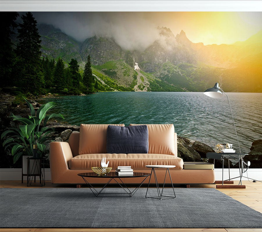 Snow Mountain Nature Lakes Black Wallpaper Mural,Self-Adhesive Peel And Stick 3D Wall Art,Australian Company Designer Wall Decor