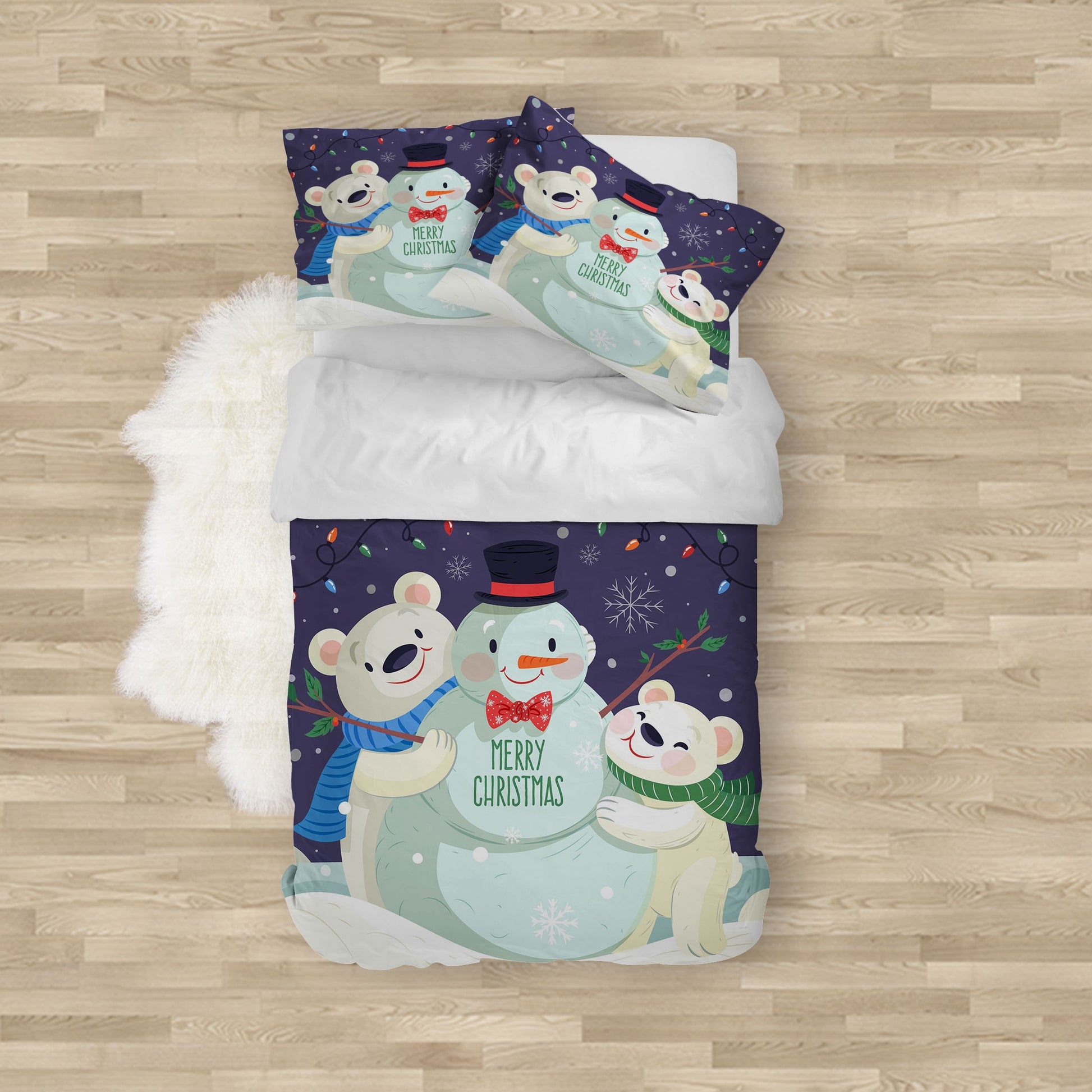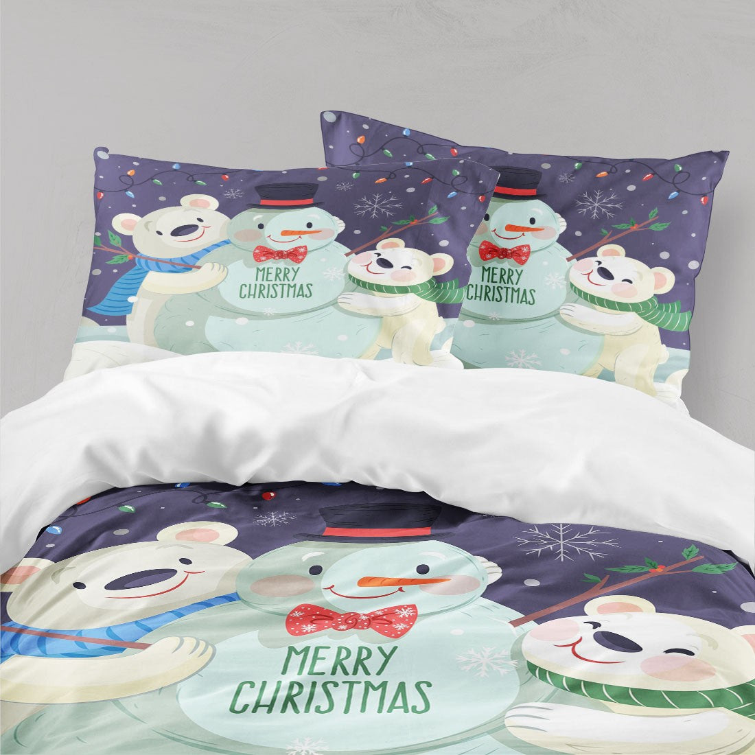 Snowman Bear Duvet Cover Set W Pillowcases, Green Kids Cartoon 3D Quilt Cover, 3Pc Single Double Queen King Size Doona Cover