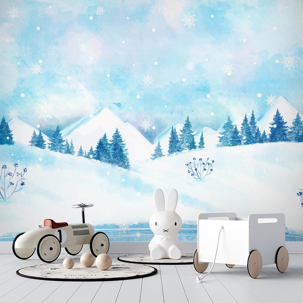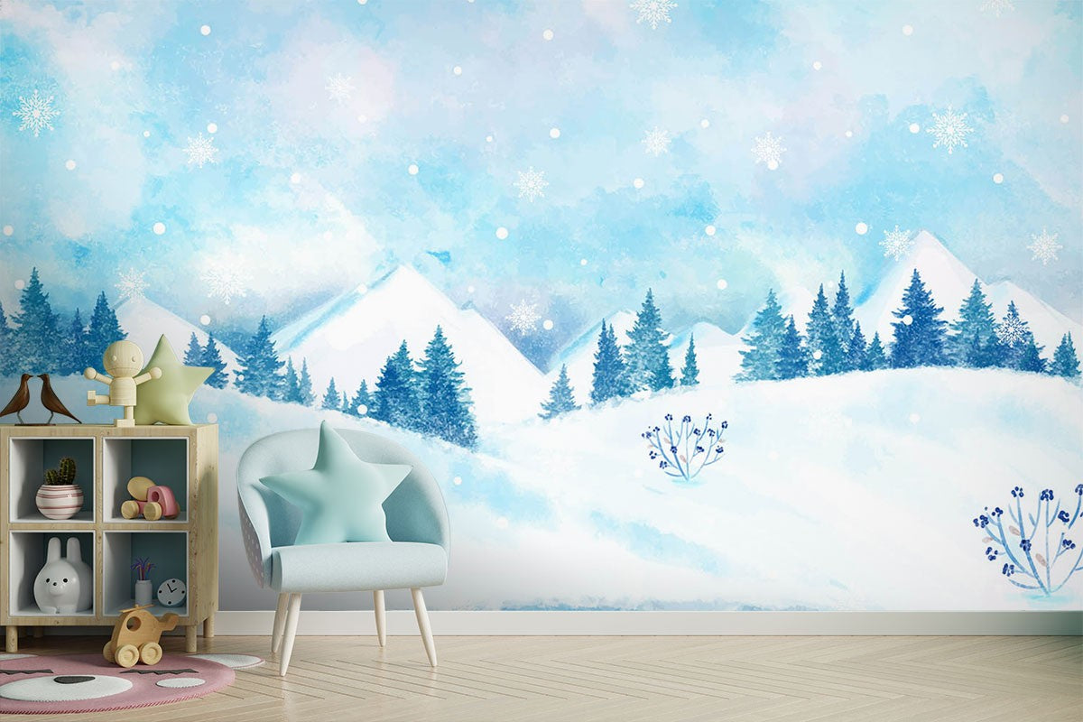 Snowy Land Kids Art For Kids Blue Wallpaper Mural