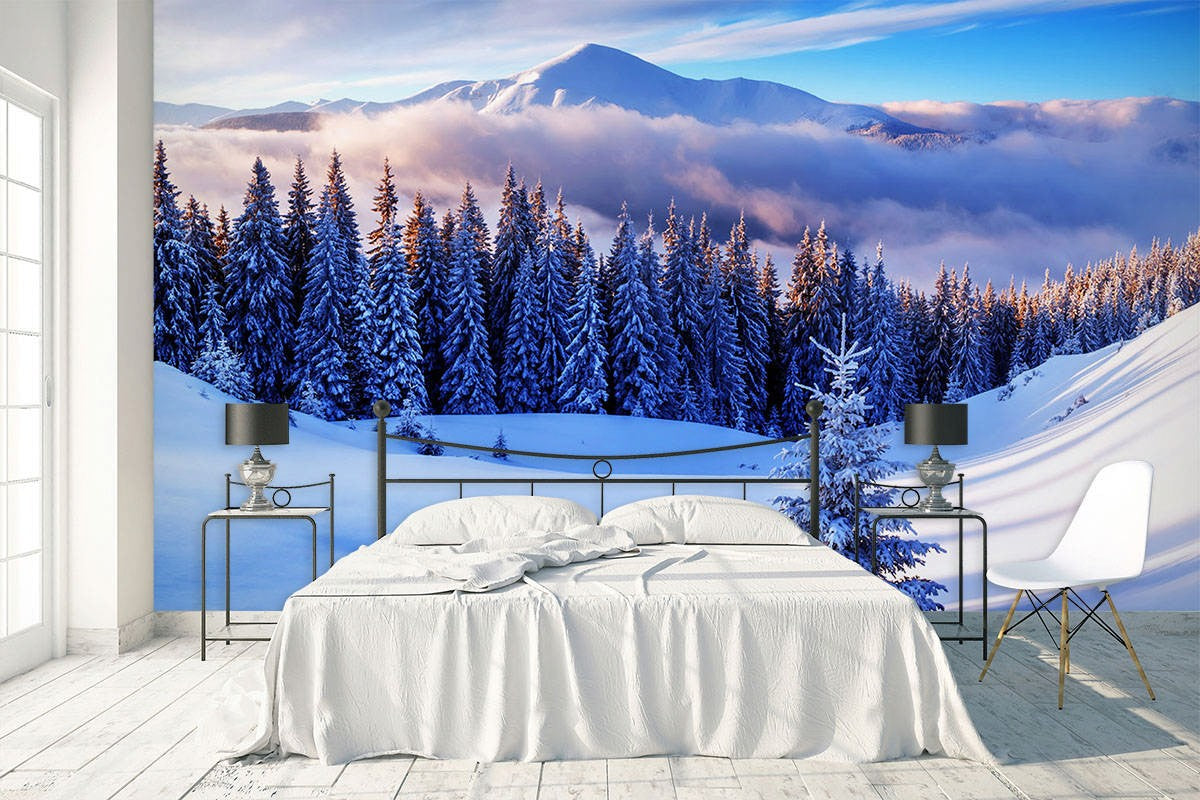 Snowy Mountain Nature Blue Wallpaper Mural,Self-Adhesive Peel And Stick 3D Wall Paper,Bedroom Australian Company Wall Decor