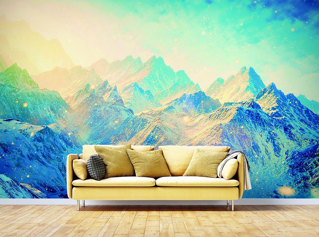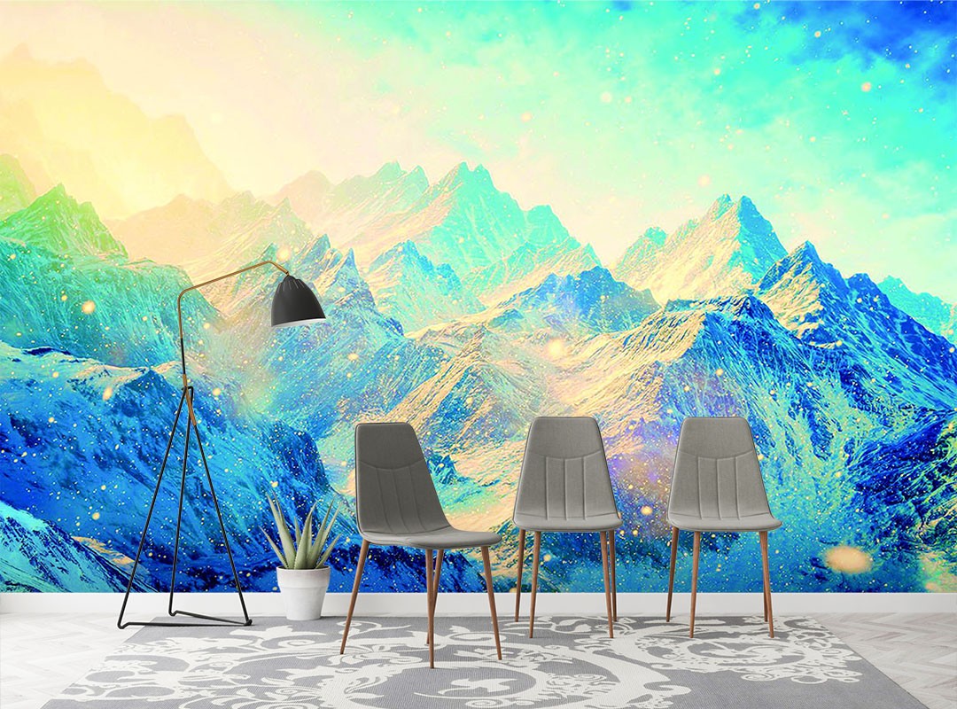 Snowy Mountains Nature Mountain Green Wallpaper Mural,Self-Adhesive Peel And Stick 3D Wall Art,Removable Designer Wall Decor