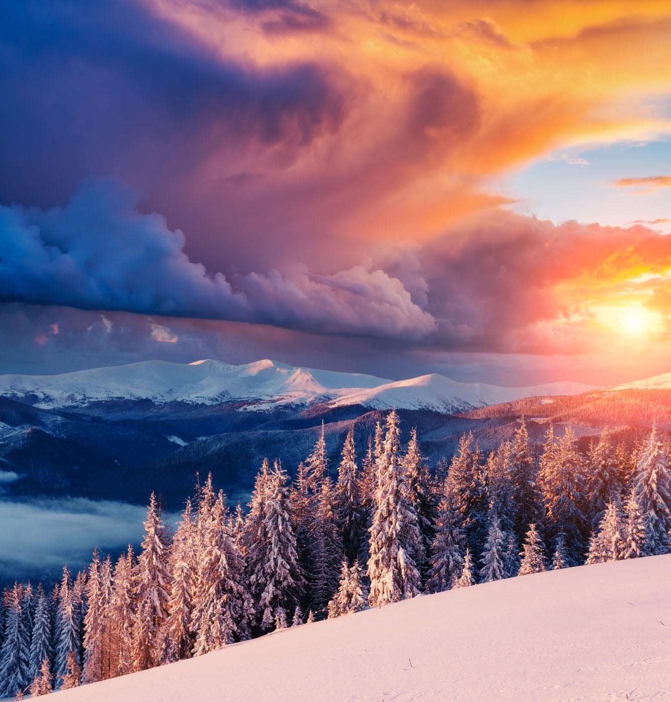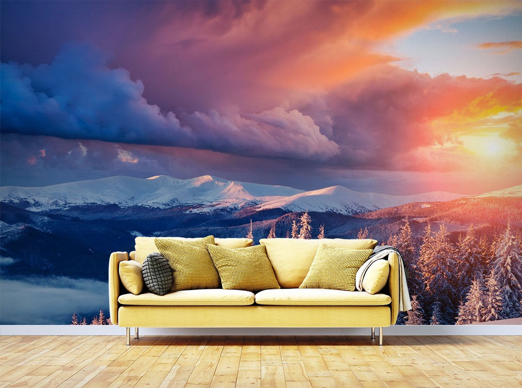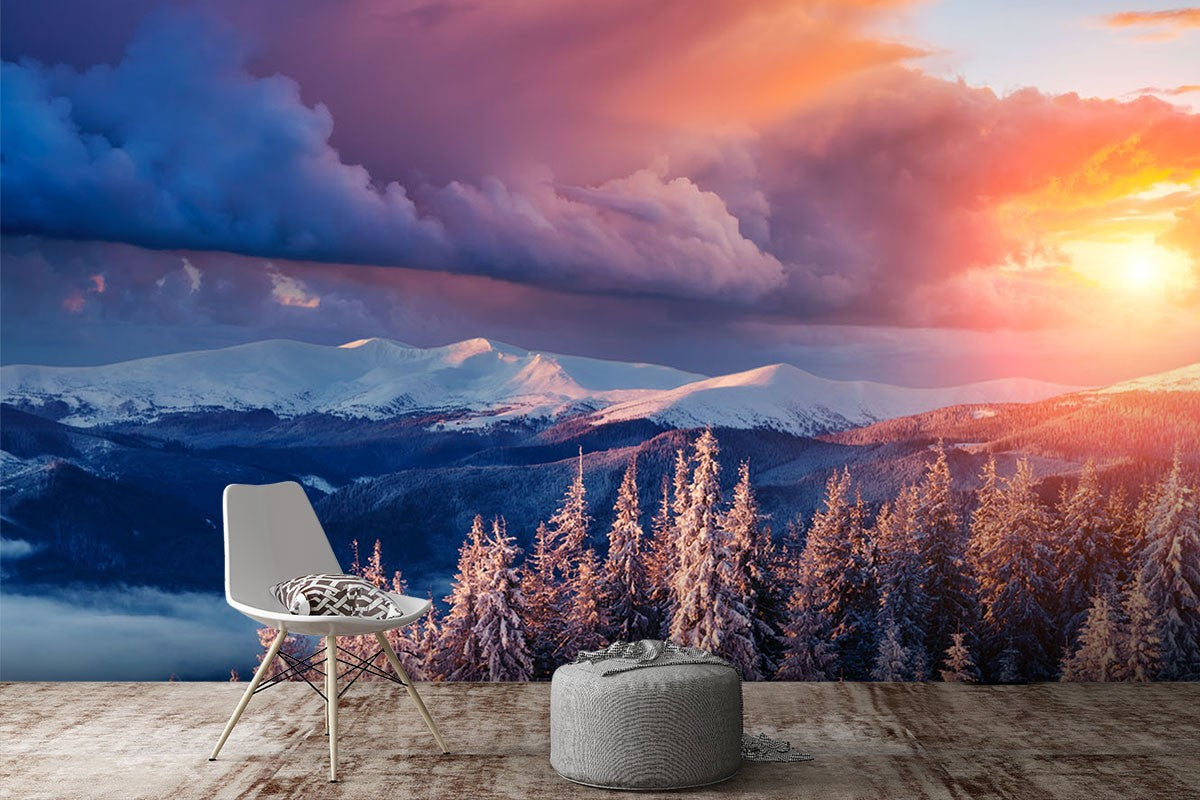 Snowy Mountains Nature Sky Orange Wallpaper Mural,Self-Adhesive Peel And Stick 3D Wall Mural,Designer Removable Wall Decor