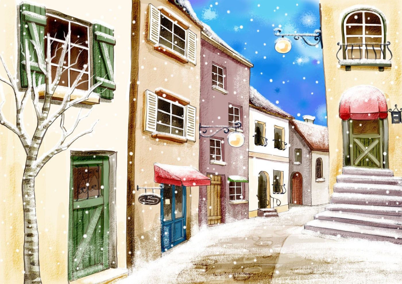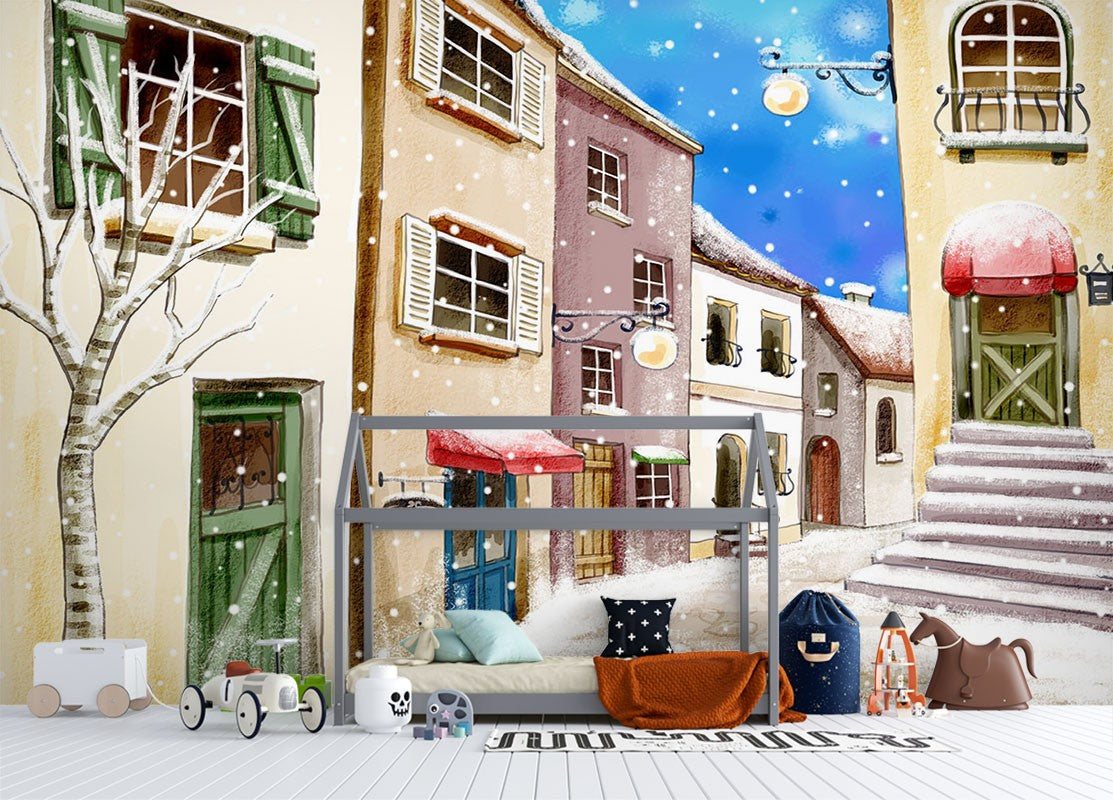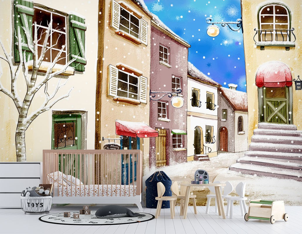 Snowy Streets Art For Kids Bright Wallpaper Mural,Self-Adhesive Peel And Stick 3D Wall Decal,Removable Designer Wall Decor