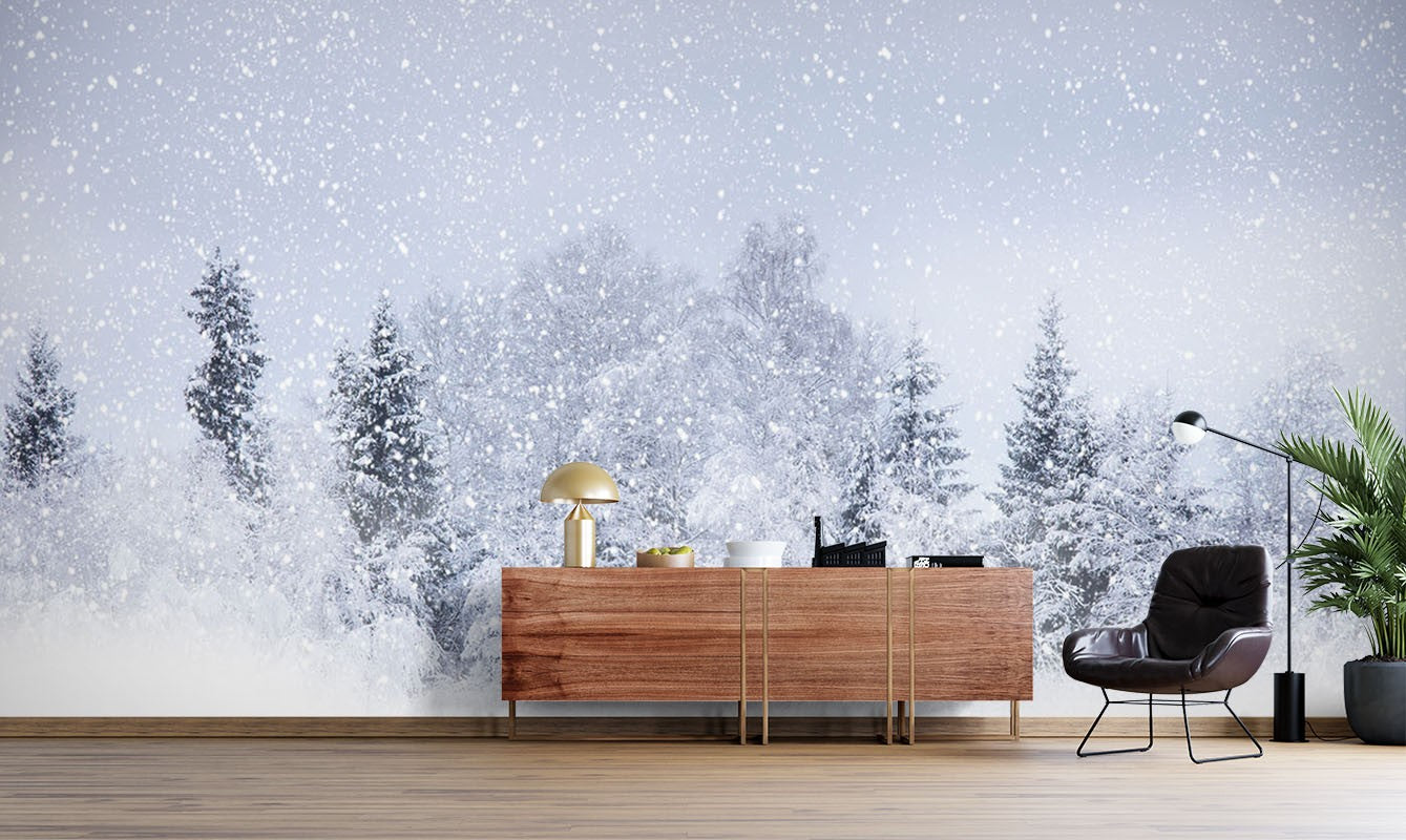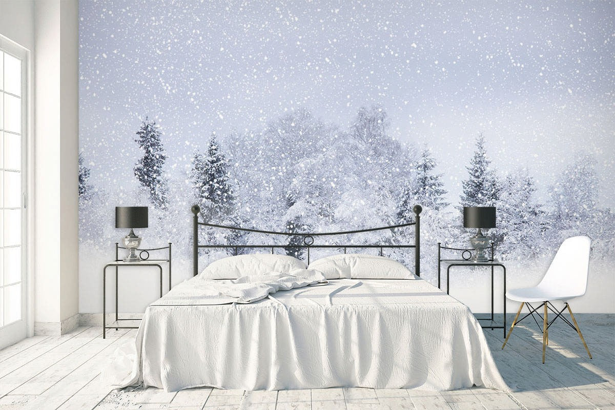 Snowy Tress Art Traditional White Wallpaper Mural,Self-Adhesive Peel And Stick 3D Wall Decal,Australian Company Wall Decor
