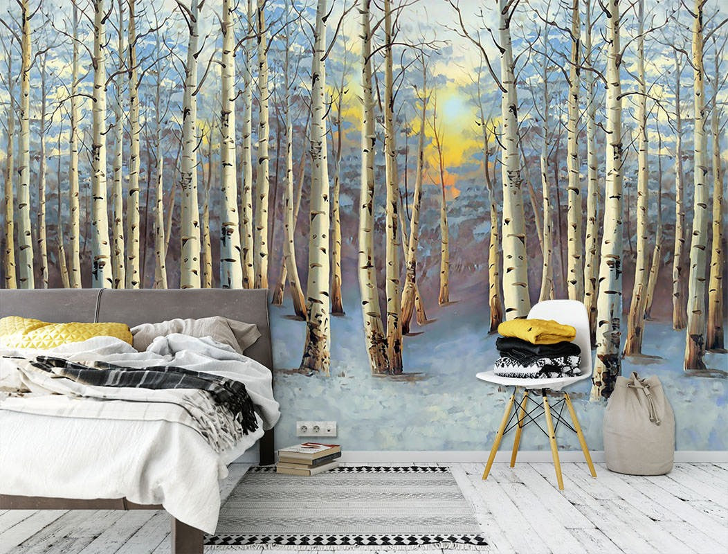 Snowy Woods Forest Seasons White Wallpaper Mural,Self-Adhesive Peel And Stick 3D Wall Paper,Removable Bedroom Wall Decor