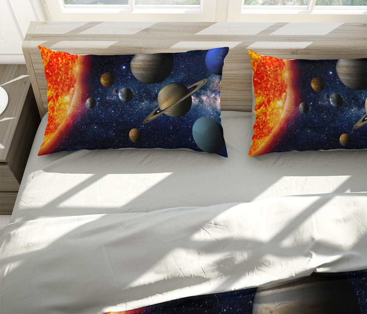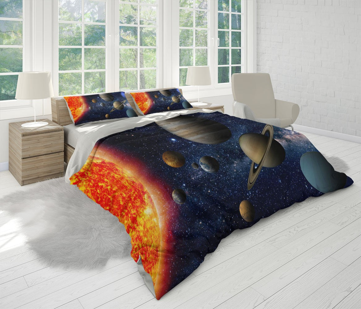 Solar System Kids Space Blue 3D Duvet Cover Set W Pillow Cover, Single Double Queen King Size, Printed Cotton Quilt Doona Cover 3 Pcs