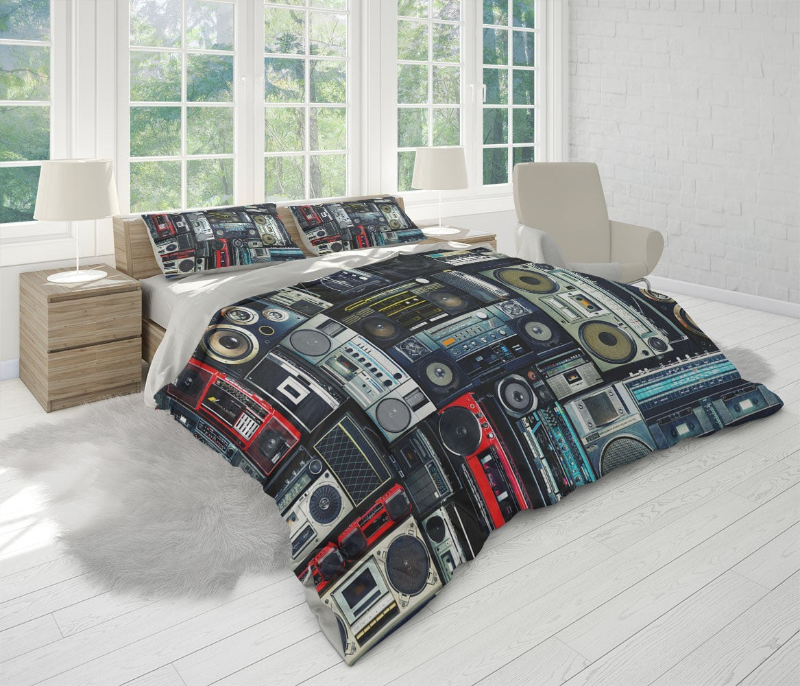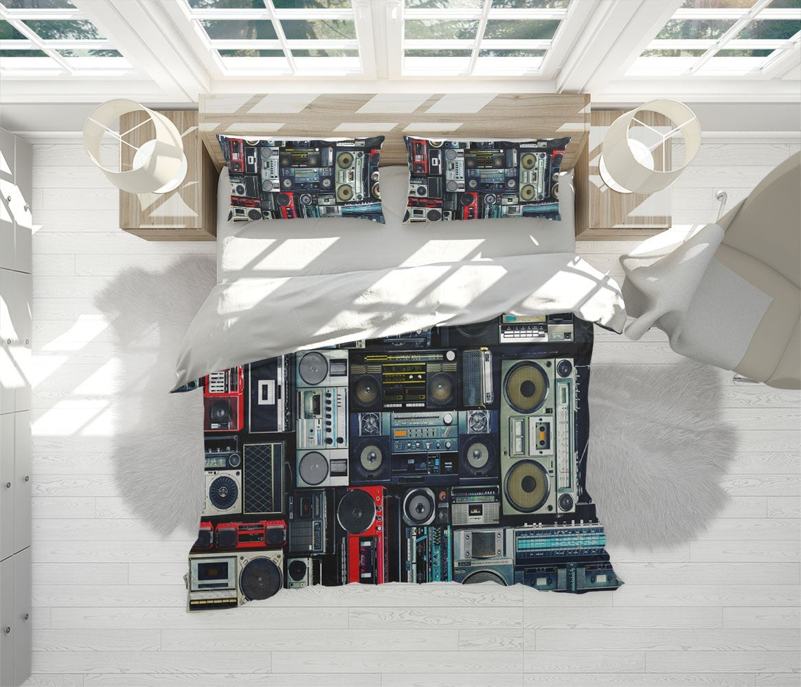Speaker Vintage Duvet Cover Set W Pillow Cover, Black Hobby Collections 3D Quilt Cover, Single Double Queen King Size Doona Cover