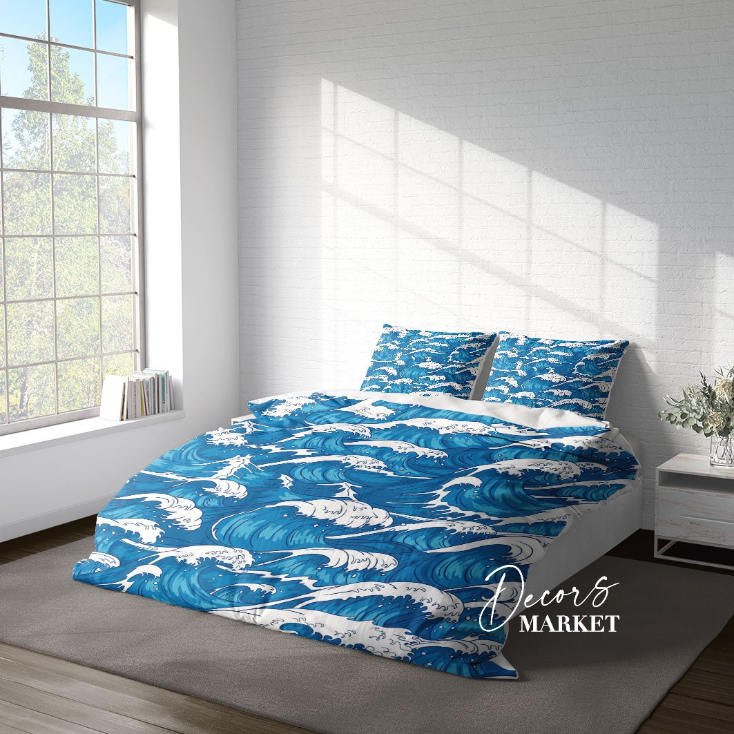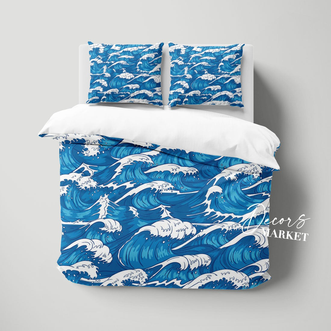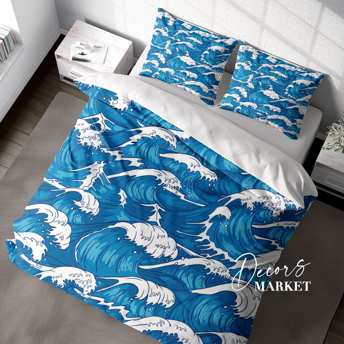 Spray White Duvet Cover Set w Pillowcases, Blue Beach Wave 3D Quilt Cover, 3pc Single Double Queen King Size Doona Cover