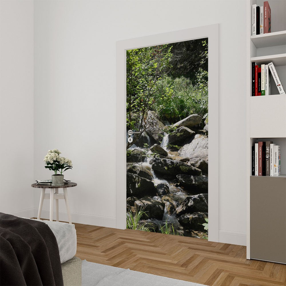 Spring Rocks Nature Landscape Door Wrap, Customized Mural For Door, Door Mural Sticker, Peel And Stick Door Cover, Removable Door Decal
