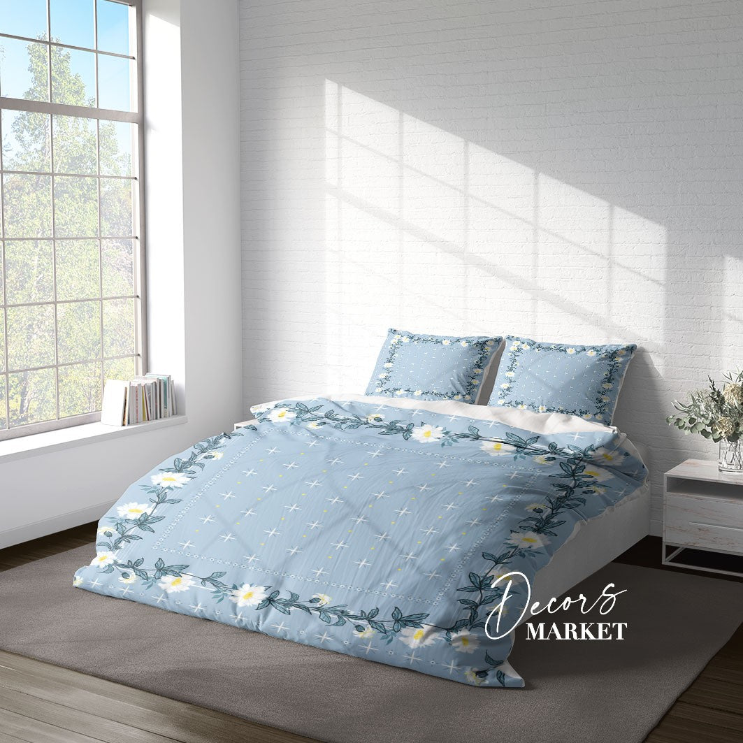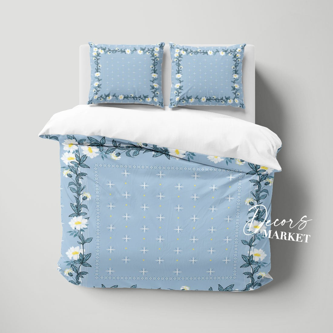 Square Wreath Duvet Cover Set w Pillowcases, Blue Floral Flowers 3D Quilt Cover, 3pc Single Double Queen King Size Doona Cover