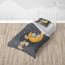 Squirrel Moon Duvet Cover Set w Pillow Cover, Yellow Kids Cartoon 3D Quilt Cover, Single Double Queen King Size Doona Cover