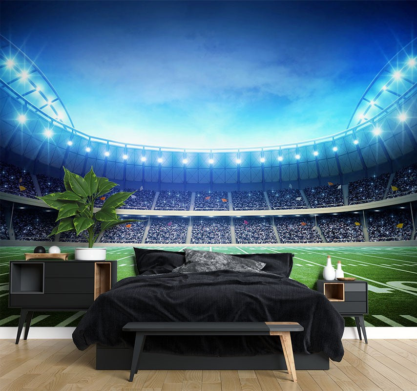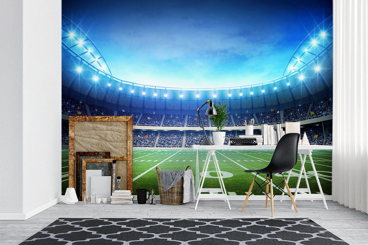 Stadium Rugby City Architecture Green Wallpaper Mural,Self-Adhesive Peel And Stick 3D Wall Art,Removable Bedroom Wall Decor