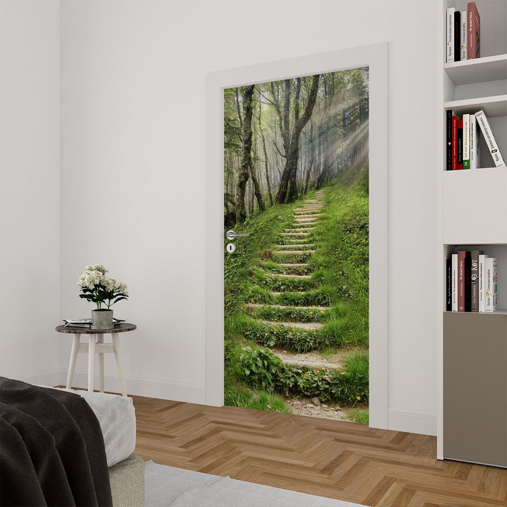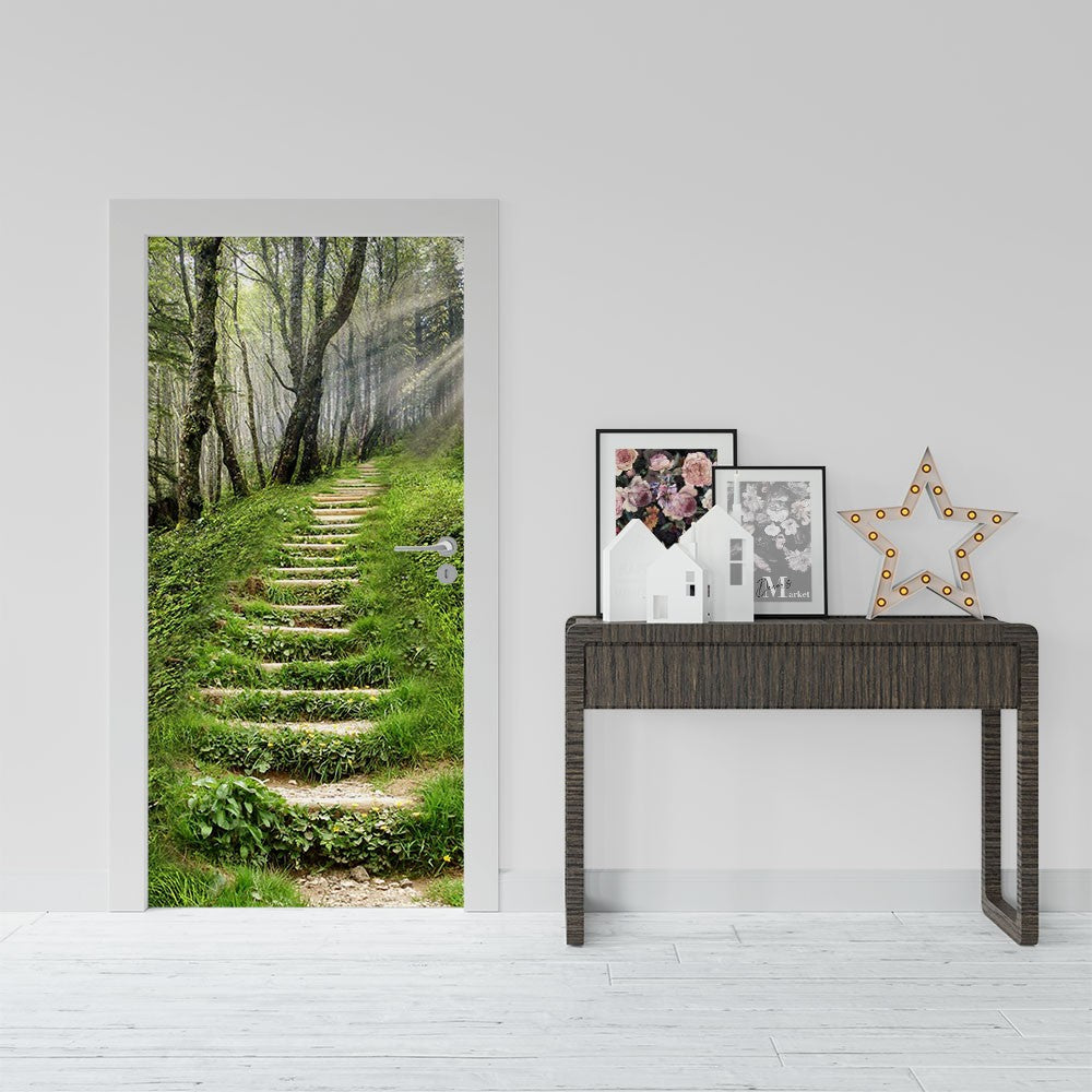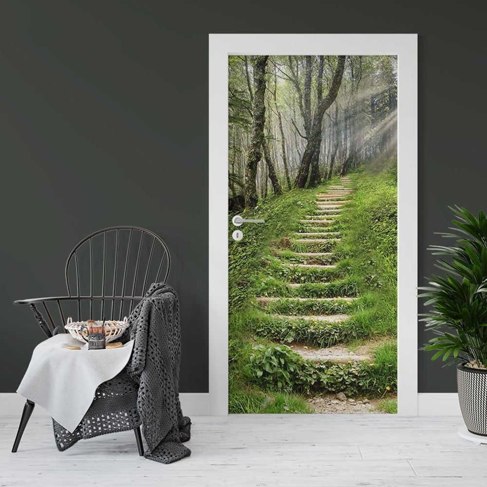 Stairs Forest Forest Door Wrap, Customized Mural For Door, Door Mural Sticker, Peel And Stick Door Cover, Removable Door Decal