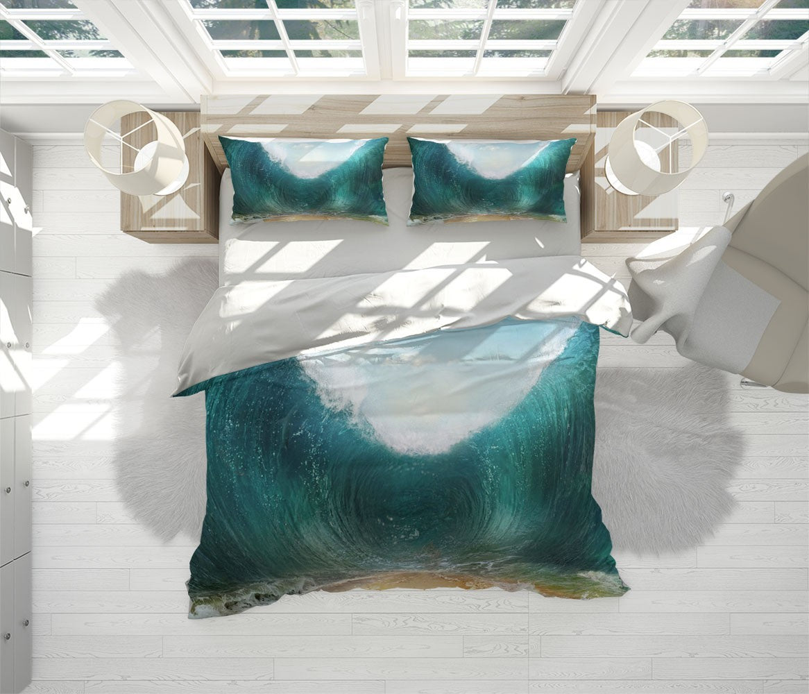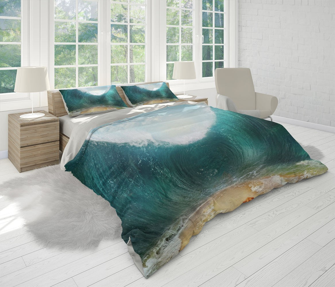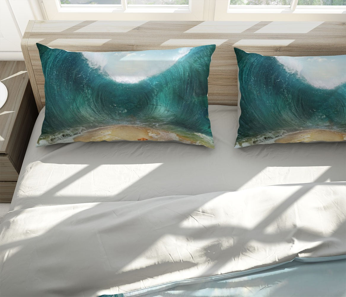 Starfish Sand Duvet Cover Set W Pillow Cover, Green Beach Wave 3D Quilt Cover, Single Double Queen King Size Doona Cover