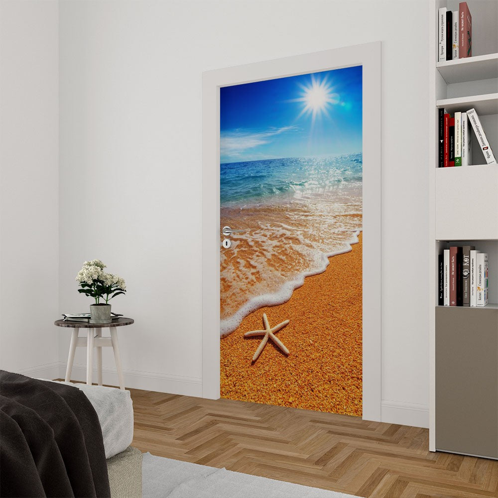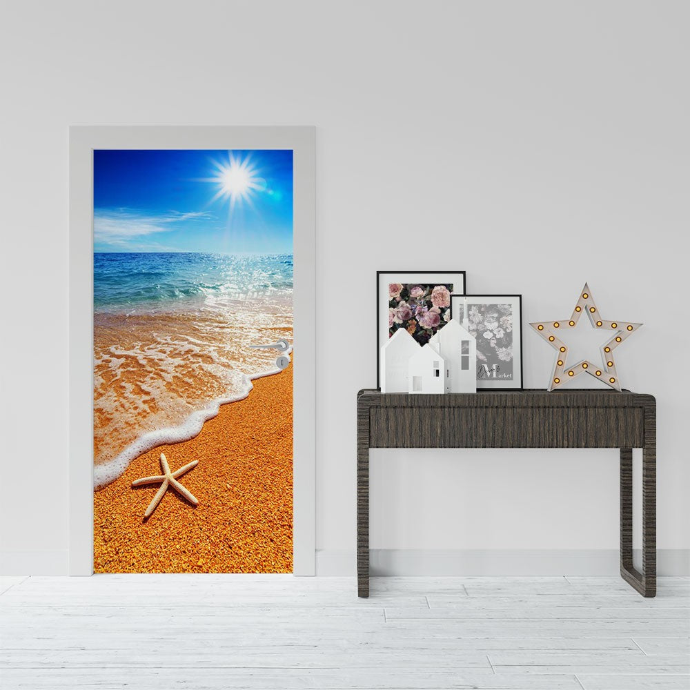 Starfish Wave Beach Beach Door Wrap, Customized Mural For Door, Door Mural Sticker, Peel And Stick Door Cover, Removable Door Decal