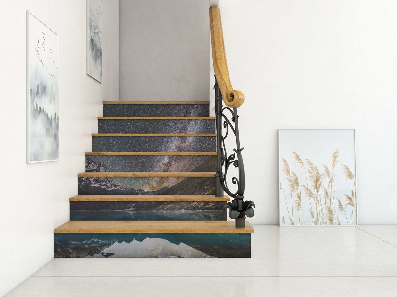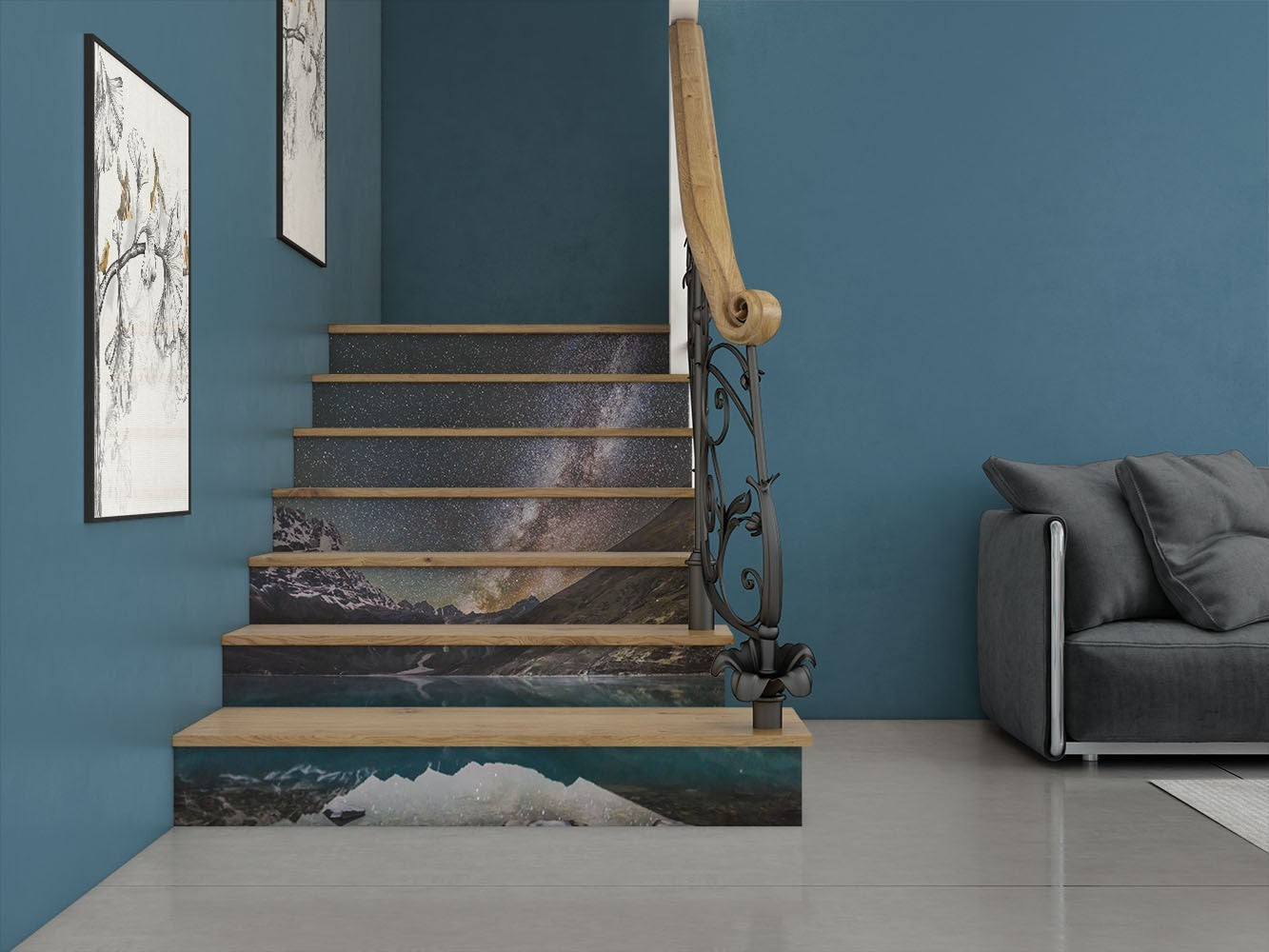 Starry Sky Nature Black Stair Riser Decals, Waterproof Removable Staircase Decals, Vinyl Peel And Stick Stairs Decal Stickers