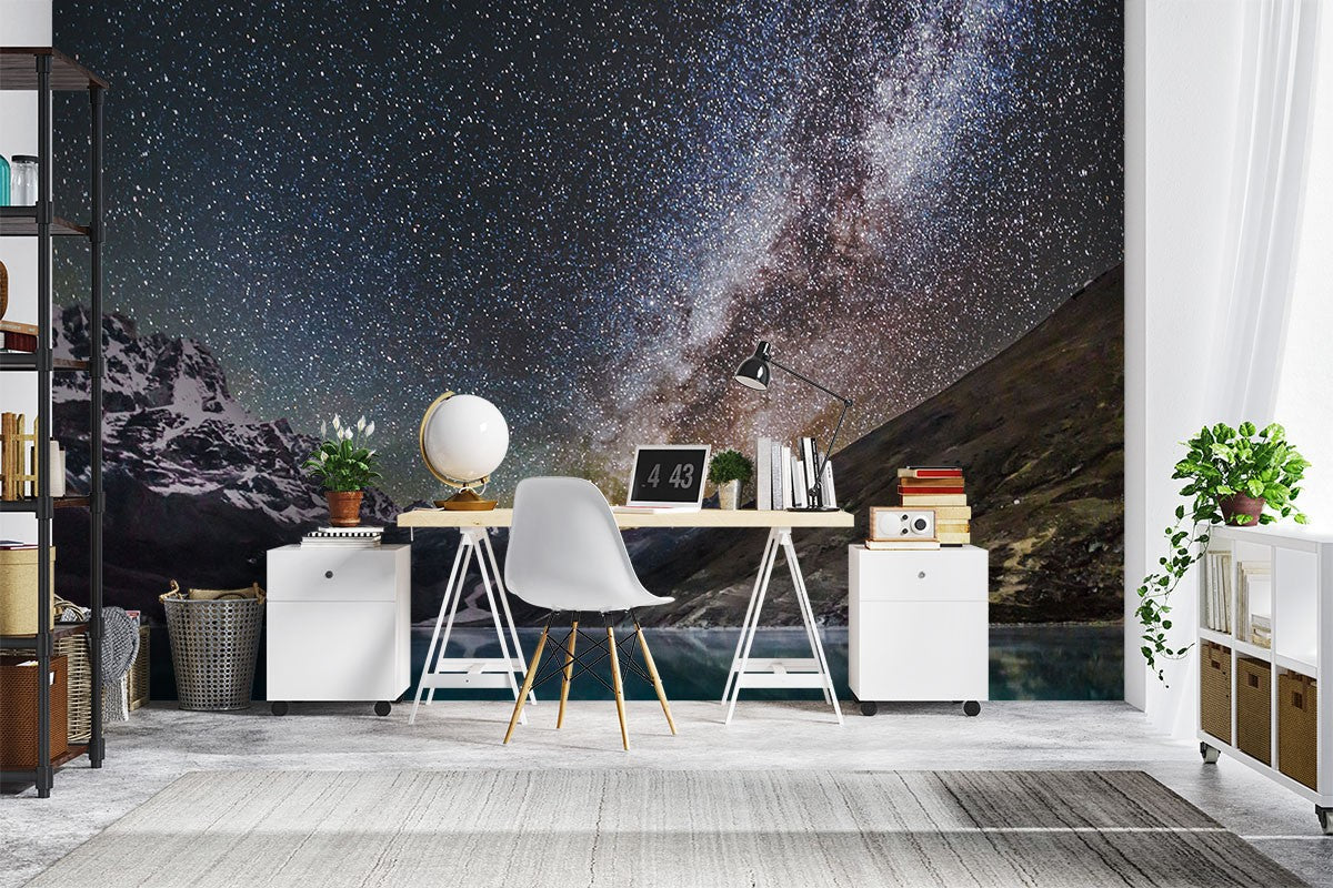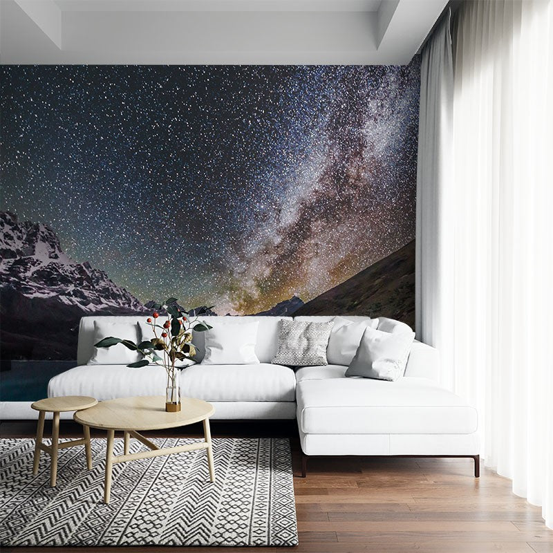 Starry Sky Nature Black Wallpaper Mural,Self-Adhesive Peel And Stick 3D Wall Decor,Designer Removable Wall Decor