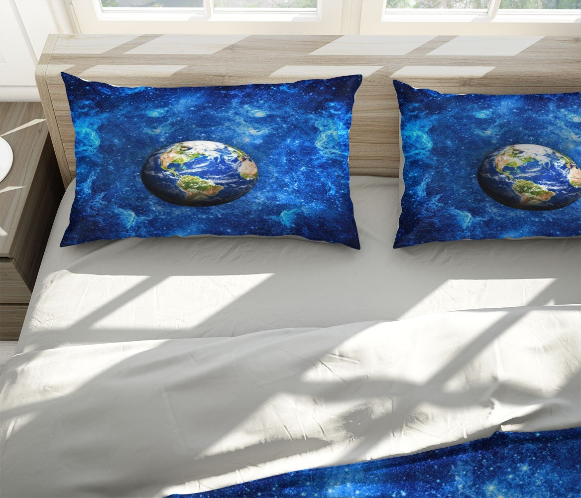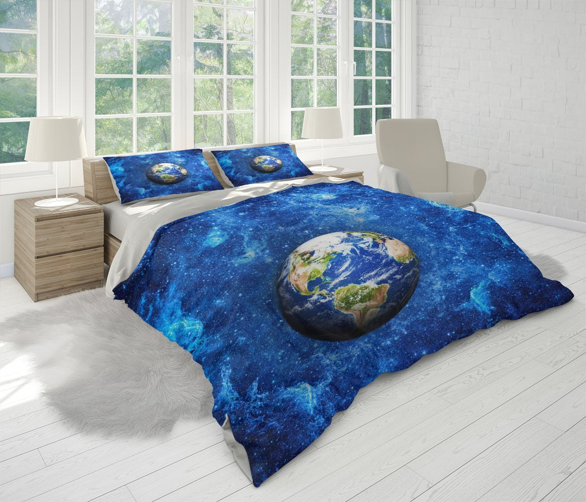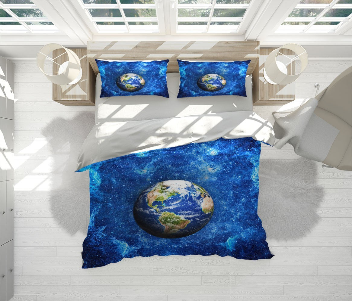 Stars Earth Duvet Cover Set W Pillow Cover, Blue Nature Space 3D Quilt Cover, Single Double Queen King Size Doona Cover