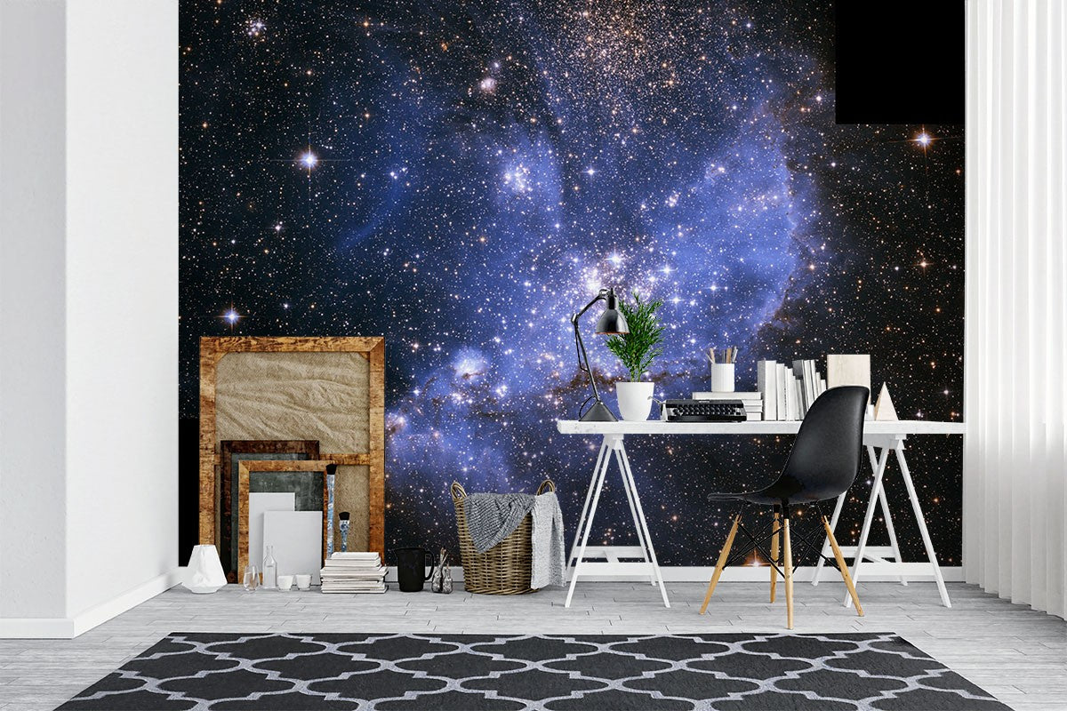 Stars Galaxy Nature Space Blue Wallpaper Mural,Self-Adhesive Peel And Stick 3D Wall Decor,Bedroom Designer Wall Decor
