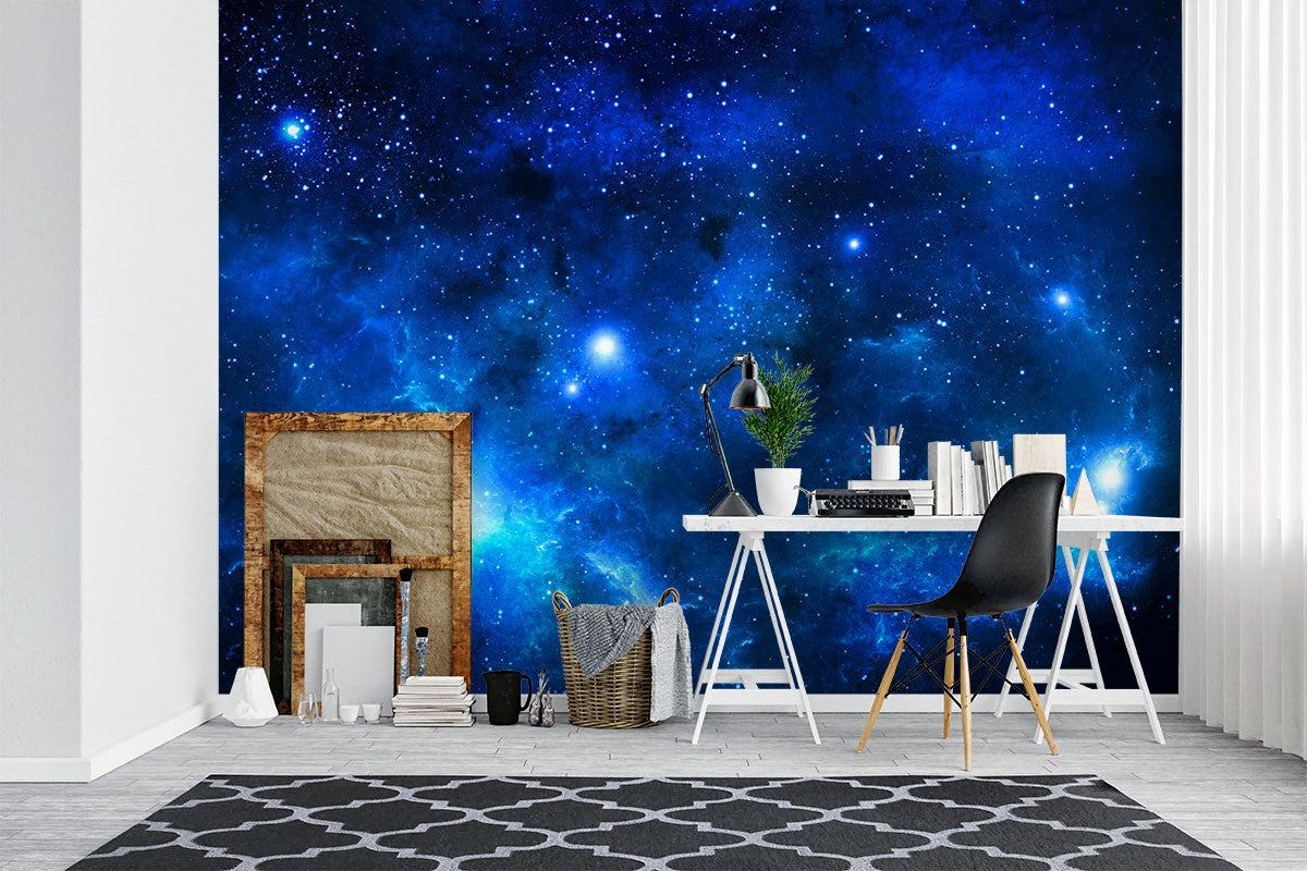 Stars Galaxy Nature Space Blue Wallpaper Mural,Self-Adhesive Peel And Stick 3D Wall Paper,Removable Designer Wall Decor