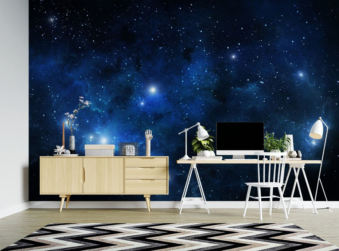Stars Galaxy Nature Space Blue Wallpaper Mural,Self-Adhesive Peel And Stick 3D Wall Decor,Designer Bedroom Wall Decor