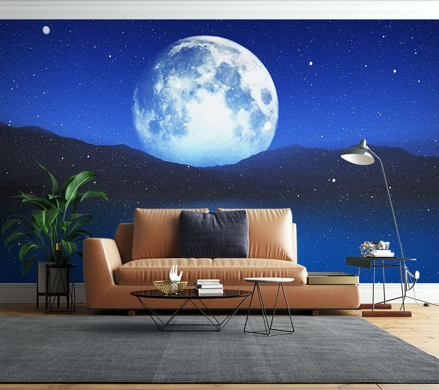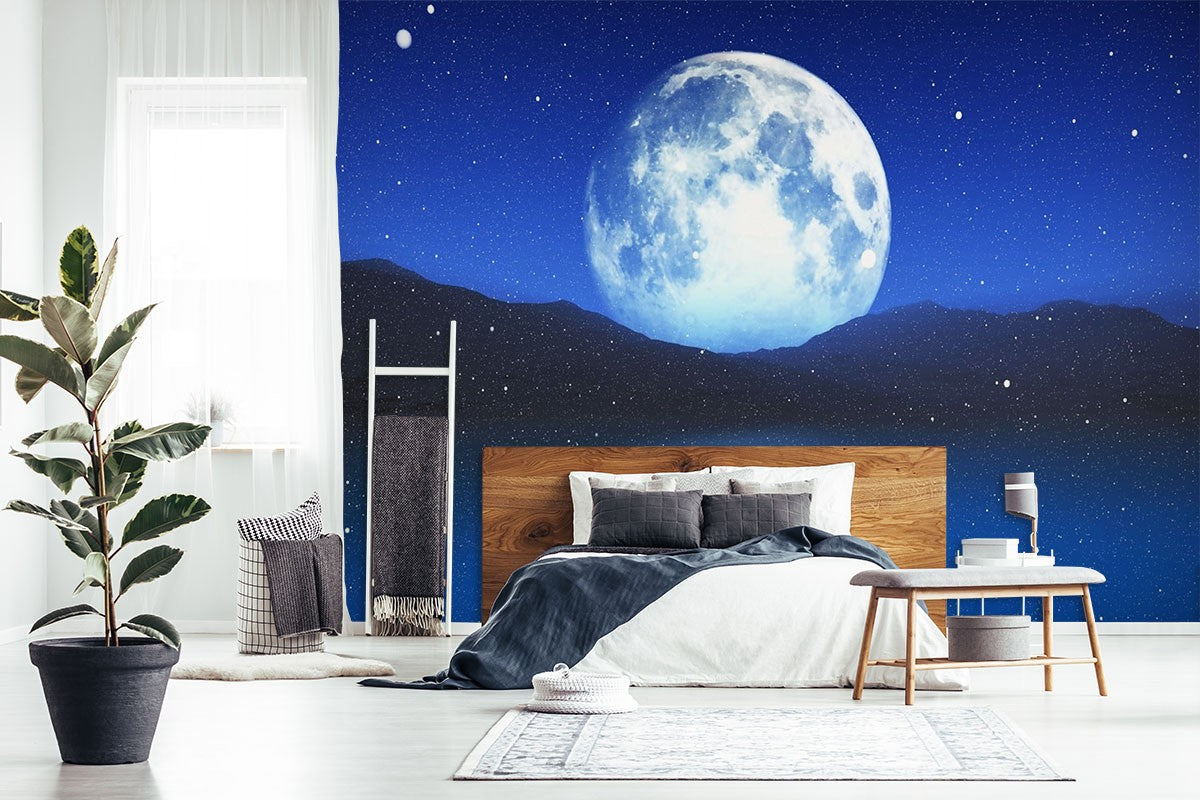 Stars Galaxy Nature Space Blue Wallpaper Mural,Self-Adhesive Peel And Stick 3D Wall Art,Designer Bedroom Wall Decor