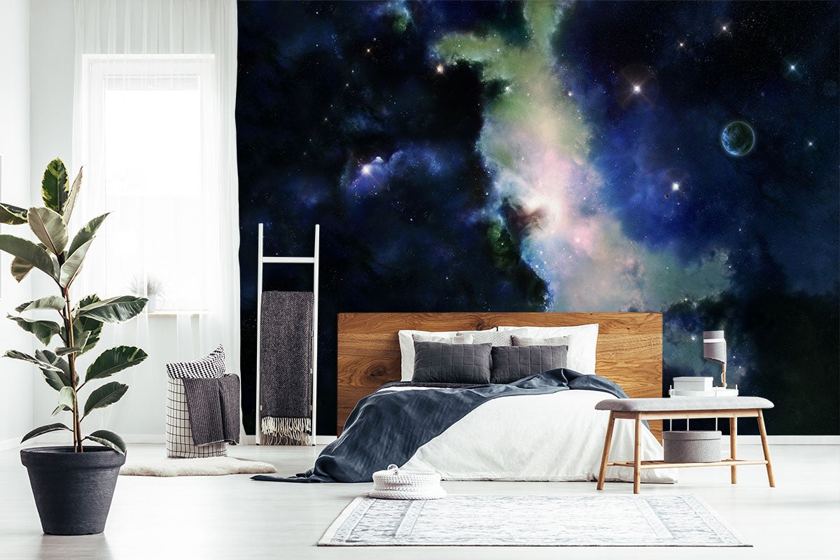 Stars Galaxy Nature Space Blue Wallpaper Mural,Self-Adhesive Peel And Stick 3D Wall Decal,Designer Australian Company Wall Decor