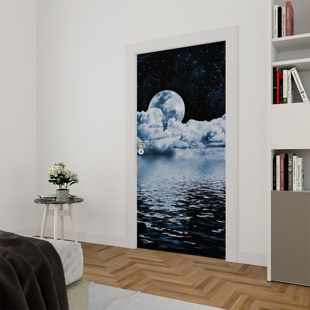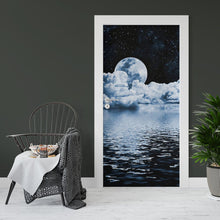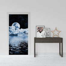 Stars Moon Nature Space Door Wrap, Customized Mural For Door, Door Mural Sticker, Peel And Stick Door Cover, Removable Door Decal