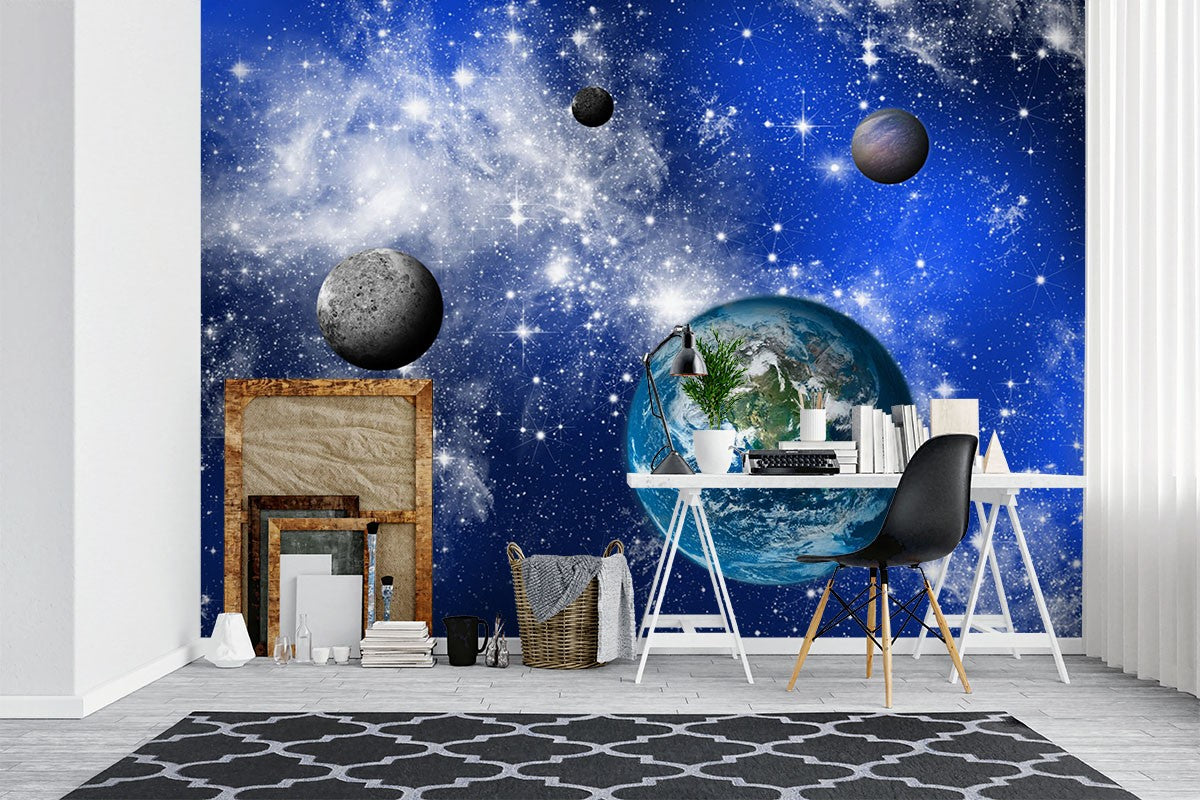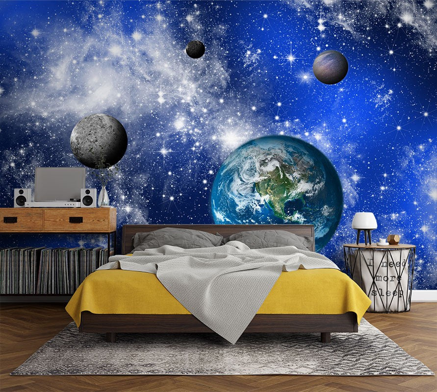 Stars Planets Nature Space Blue Wallpaper Mural,Self-Adhesive Peel And Stick 3D Wall Paper,Bedroom Australian Company Wall Decor